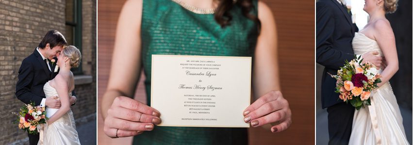 With spring you never know what kind of weather you will get. When I met with Cassie and Tom to chat about their wedding day we were all envisioning slushy and cold. Surprisingly we were mistaken and got one incredible April day to celebrate their intimate exchange of vows. The 413 on Wacouta is such a romantic, beautiful building set in the heart of St. Paul. With so many places nearby, I was able to capture Cassie and Tom and their families perfectly. It was a beautiful day and I so loved getting to know this kind couple and their families!