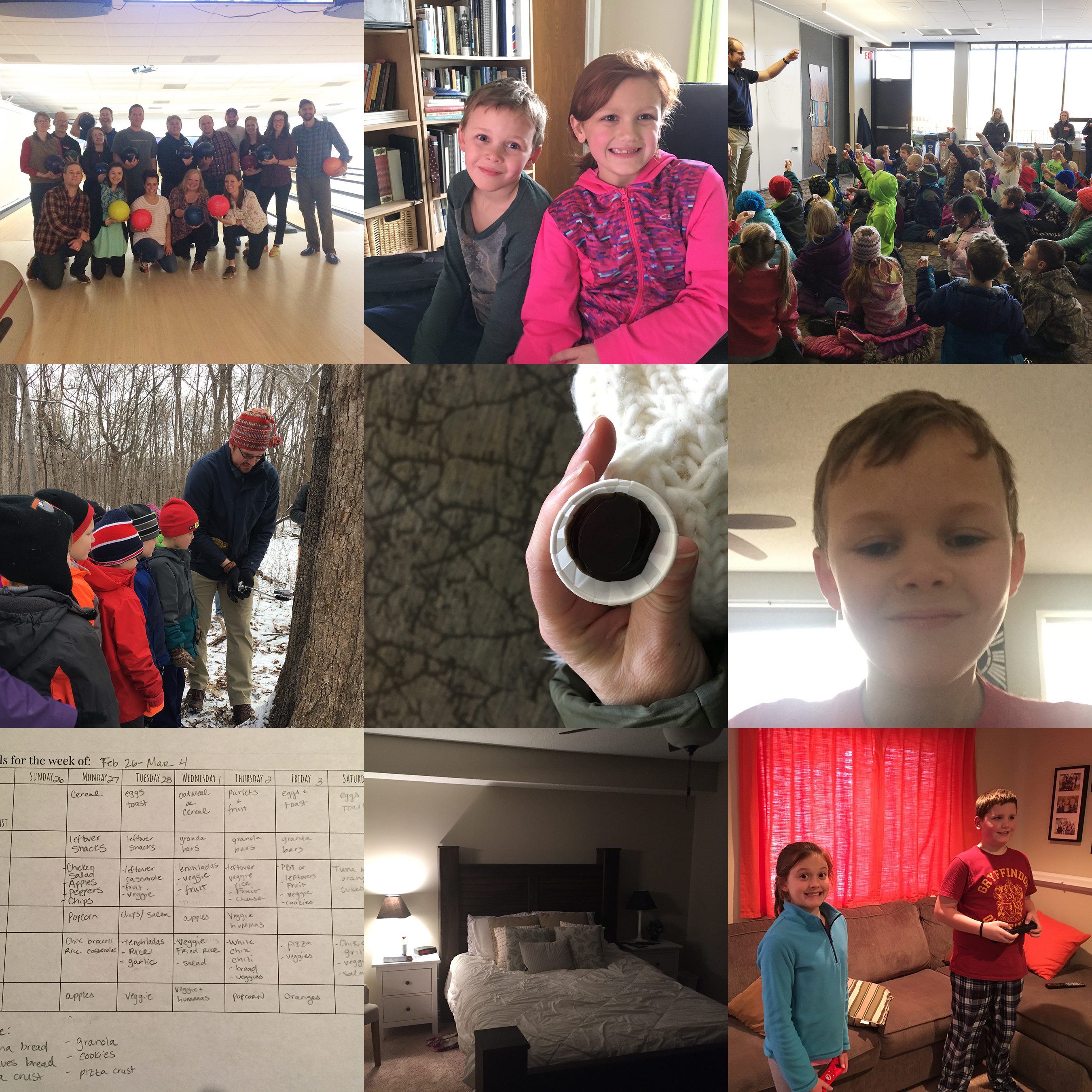 Wow, we are already 9 weeks into the year! Crazy hard to believe that winter (one of my least favorite seasons!) is almost over! This was a week of getting things done at home and in the office (read taxes and bookkeeping, bla), so not a whole lot of photos taken. But I did get to tap some Maple trees with Ben’s class on a field trip, hang out with some wonderful friends on a bowling night, finally make some progress on my personal goals by getting our headboard/ footboard up and in our room (a long time coming, but we finally feel like grown-ups!), and have the kids have a playdate with friends!