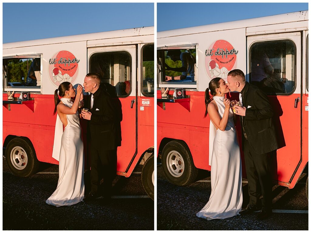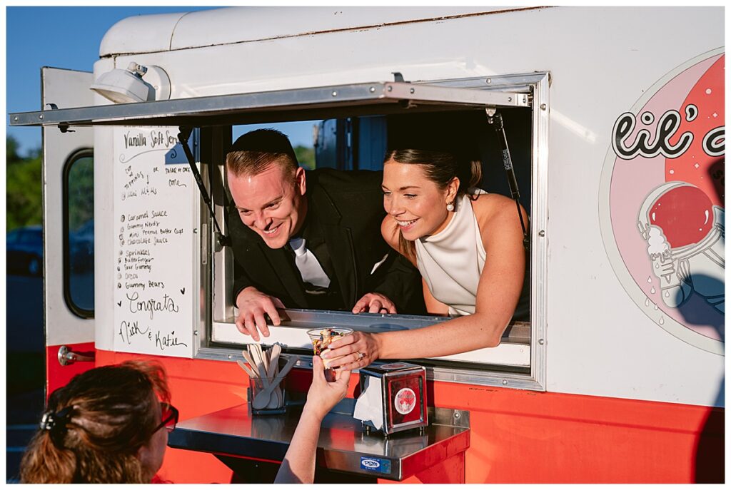 As the day transitioned into evening, guests enjoyed the vineyard’s classic reds and whites and indulged in sweet treats from the Lil’ Dipper ice cream truck. The charcuterie board was a feast for both the eyes and the palate, provided by the fantastic Creative Catering by Molly . The golden hour was truly magical, casting a warm glow over the vineyard, perfect for capturing breathtaking photos of the newlyweds.