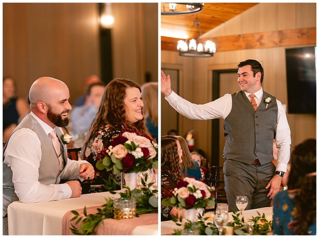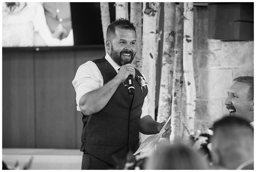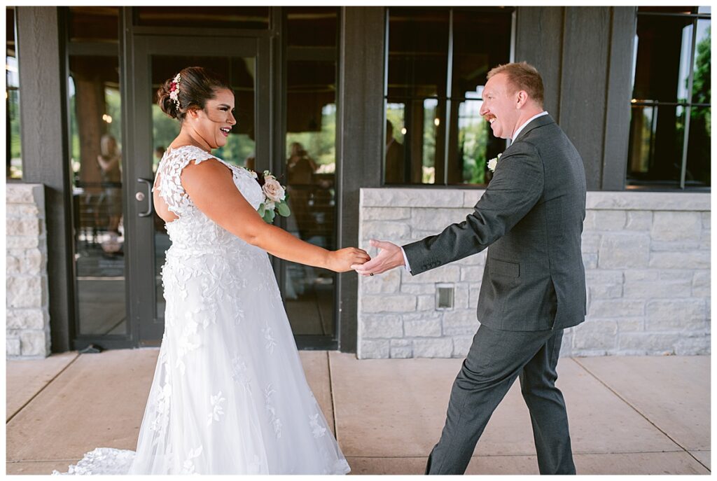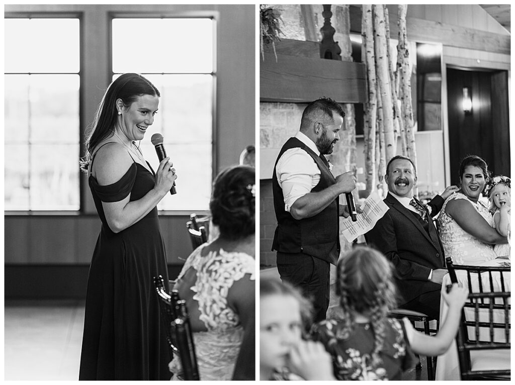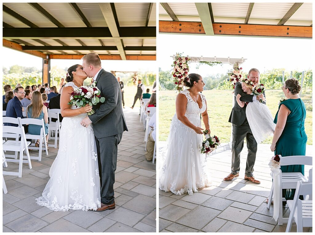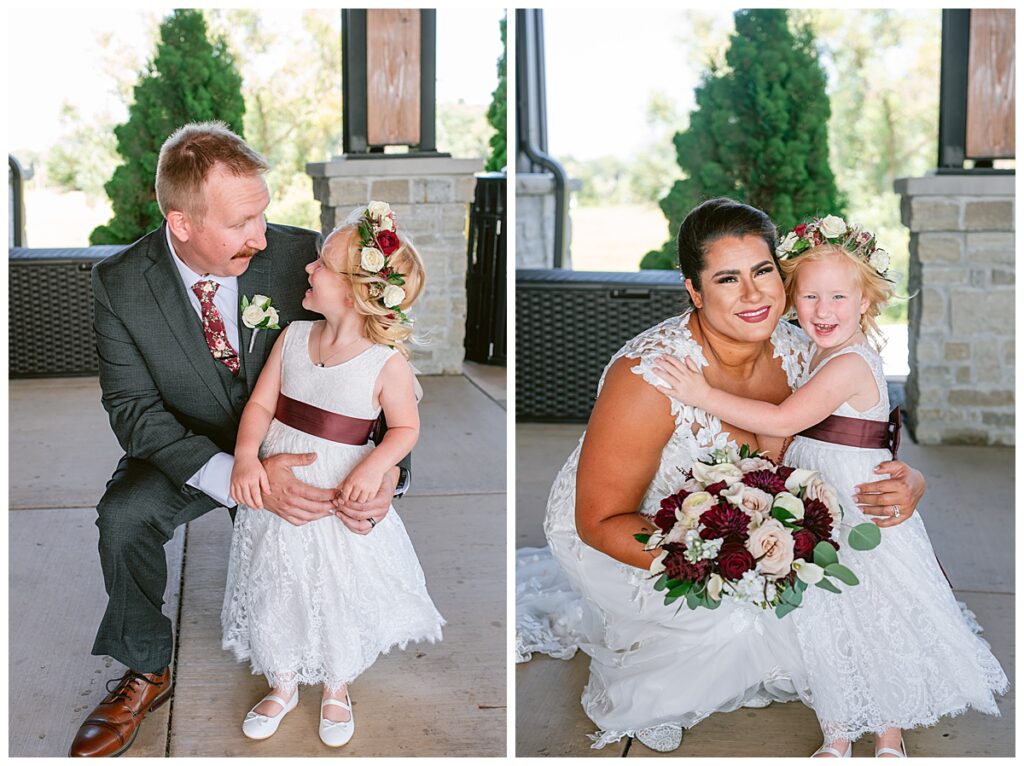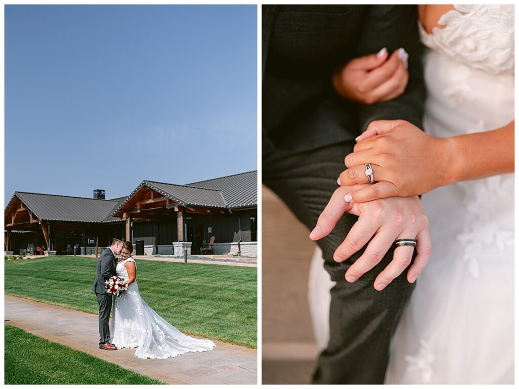 Friends and family traveled from all over the United States to celebrate with Justine and Brandon over the holiday weekend. There was not a dry eye in the place as Brandon’s daughter, followed by Justine, walked down the aisle. One of their dear friends officiated the ceremony as they exchanged rings from Mueller Jewelers and Manly Bands. Friends and family cheered as they shared a kiss to end their ceremony.