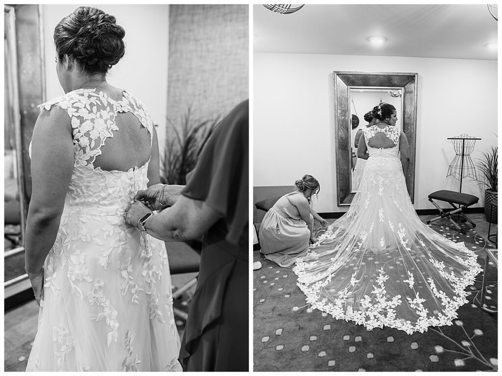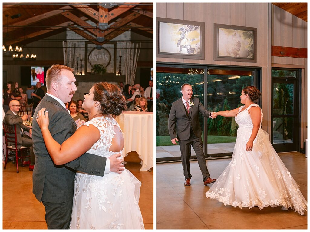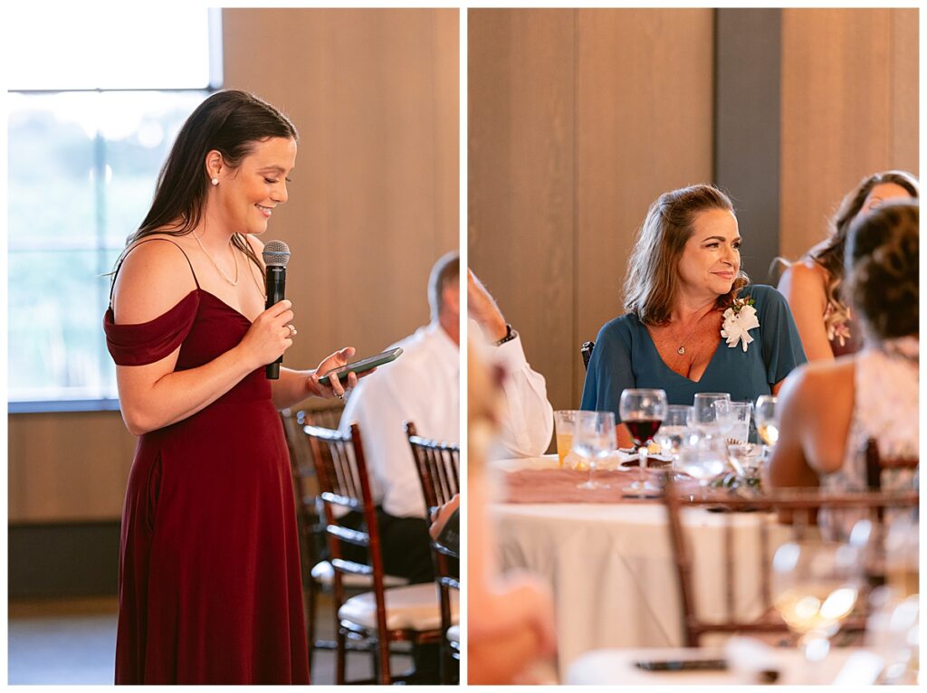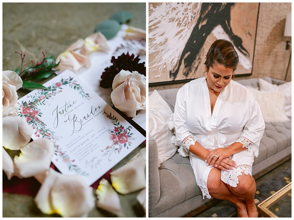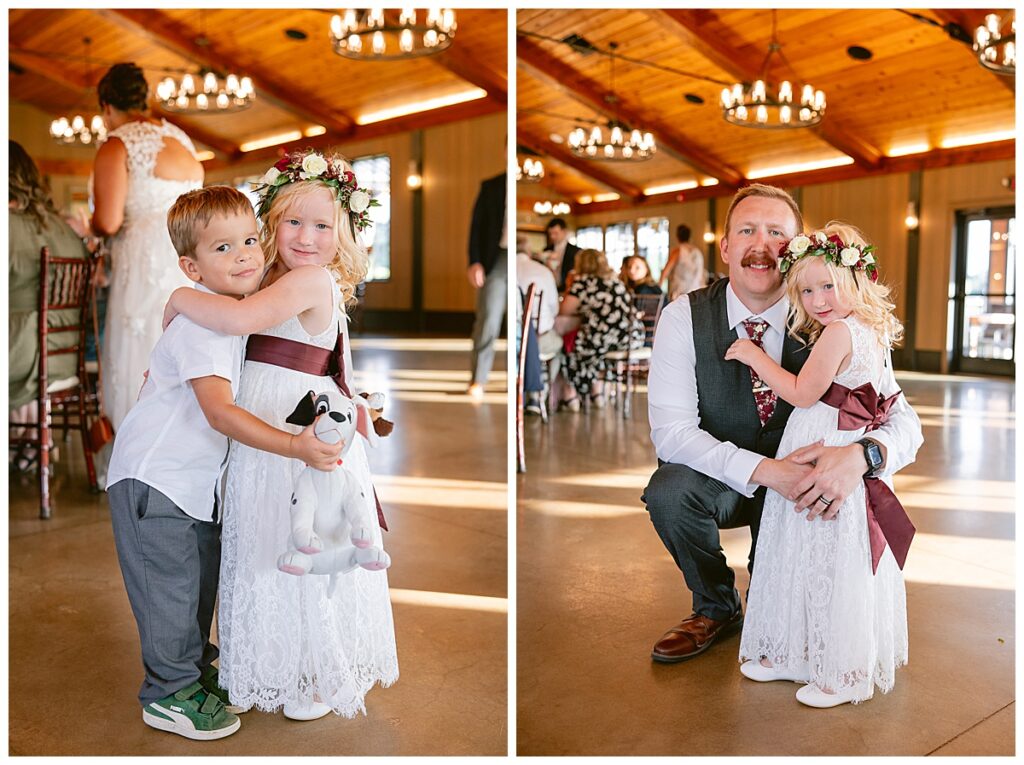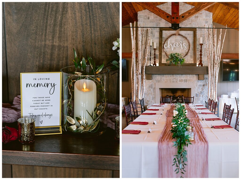Friends and family traveled from all over the United States to celebrate with Justine and Brandon over the holiday weekend. There was not a dry eye in the place as Brandon’s daughter, followed by Justine, walked down the aisle. One of their dear friends officiated the ceremony as they exchanged rings from Mueller Jewelers and Manly Bands. Friends and family cheered as they shared a kiss to end their ceremony.