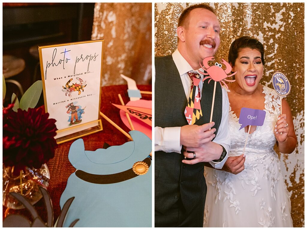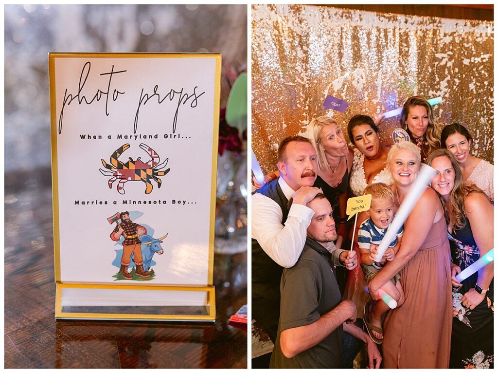 Donatilli’s provided a tasty meal for guests to share and Rush City Bakery pulled together a dessert table full of sweet cupcakes and cakes. August of Studio Veil brought guests to the dance floor while light sticks. (Or sabers…) kept the dance lively and well lit! The couple spent time creating signs and decorations that showed their unique representation of Maryland and Minnesota coming together for their Photo Booth book that Studio Vail created for them.