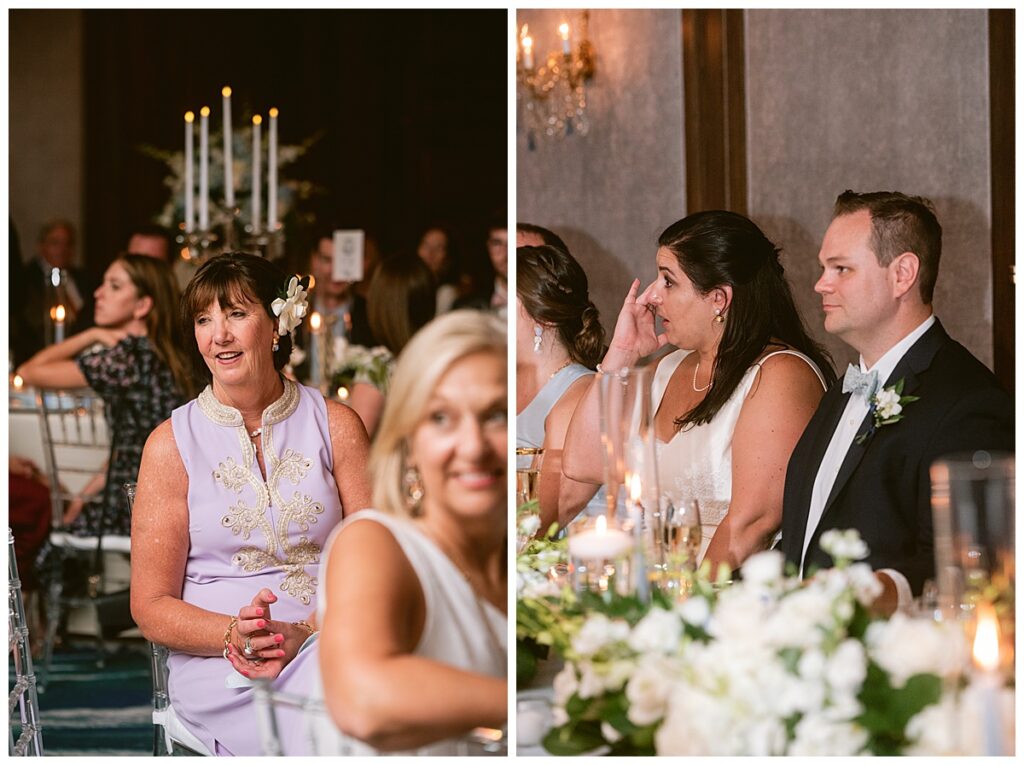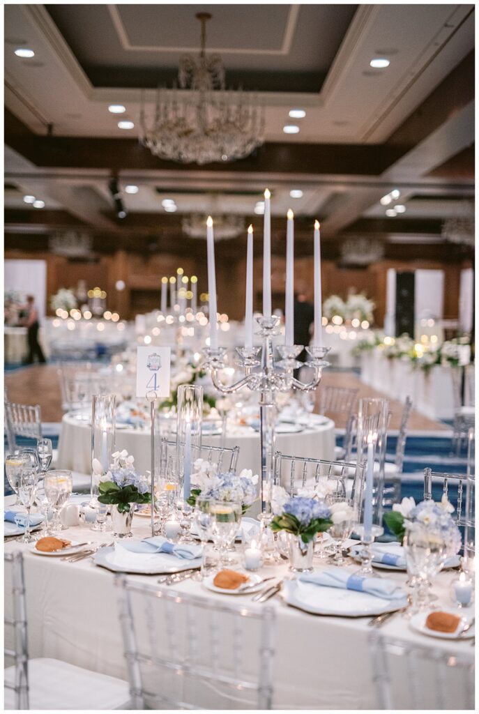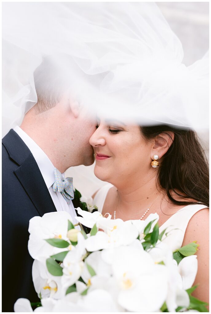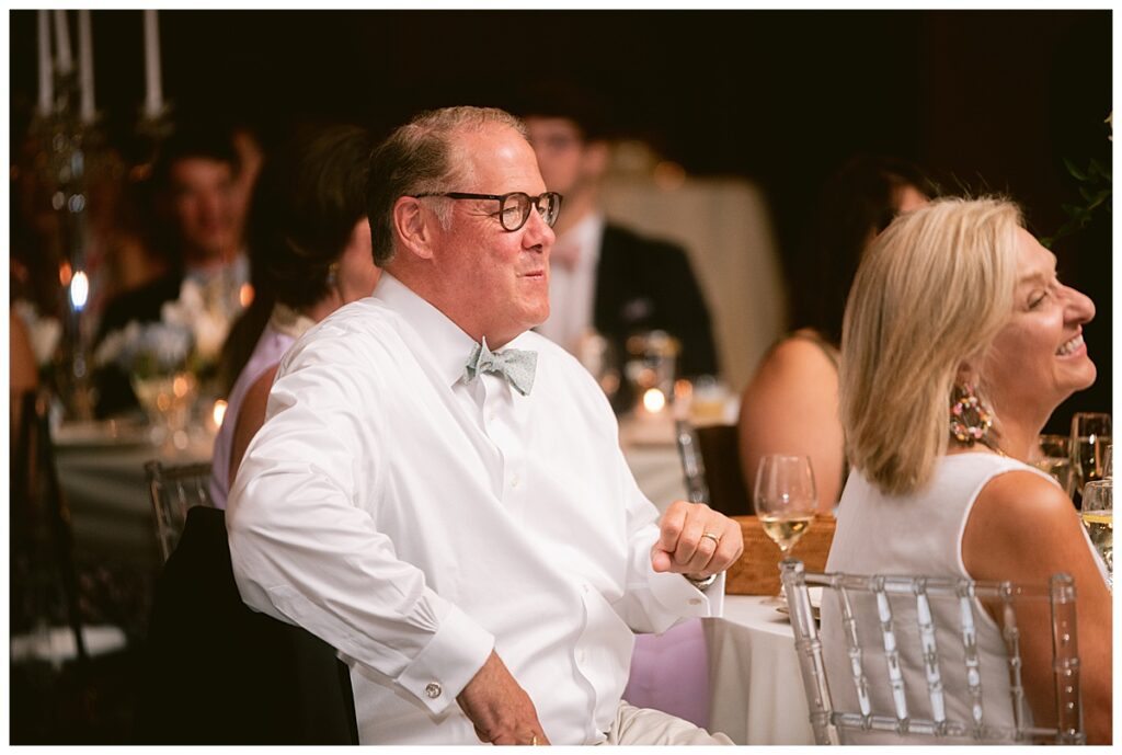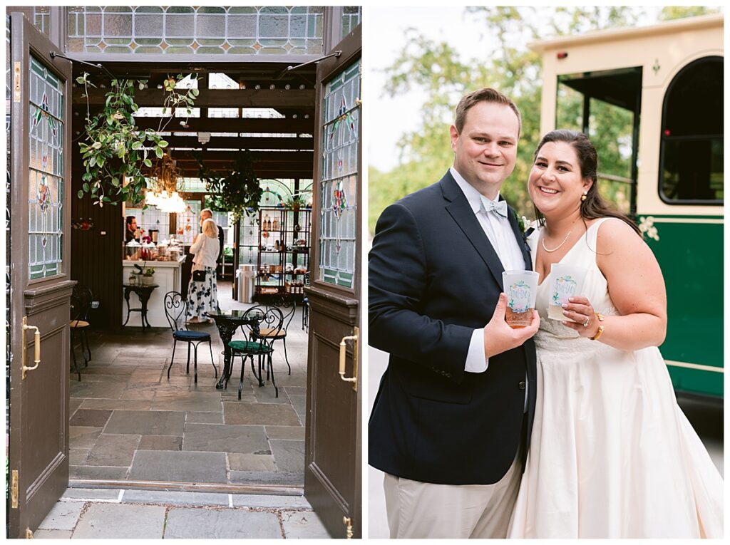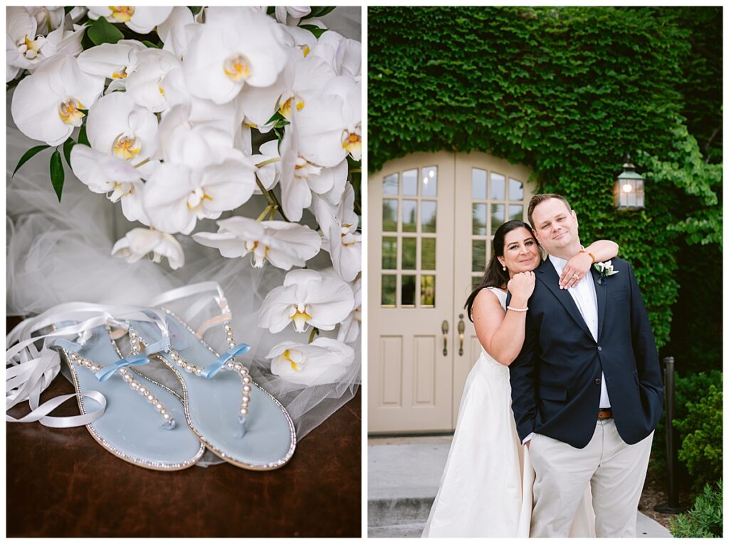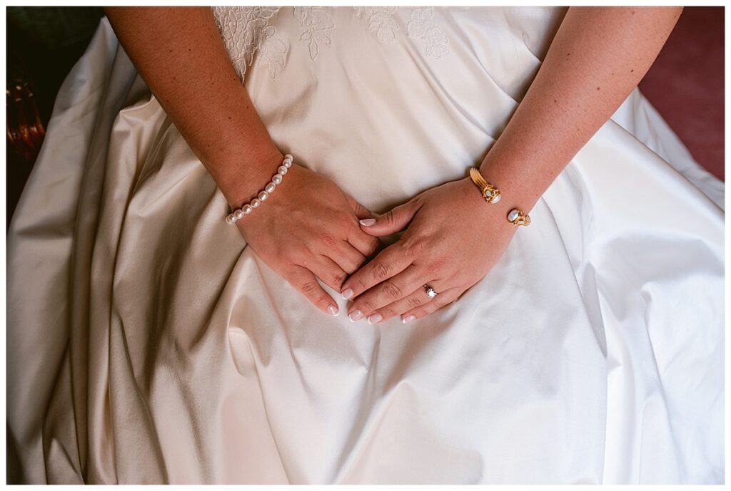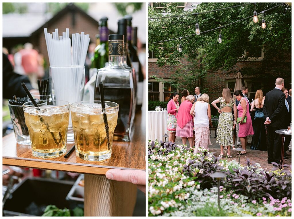 Mark and his groomsmen got ready in their Brooks Brothers attire and monogramed sleeves while toasting Bourbon and shooting pool. Not one detail was overlooked as Meghan’s mother, Mary, planned an incredible day. Meghan and Marks’ monogram was displayed throughout the wedding day in everything from the ribbons on the bridesmaids flowers to the cake to the floor logo to each napkin the guests received at their place setting. Their beautiful wedding invitations designed by Kate Murphy, displayed a beautiful American Club in watercolor. Meghan and her father were escorted to the church ins a white classic Cadillac driven by Lee of Lee’s Classic Cars.