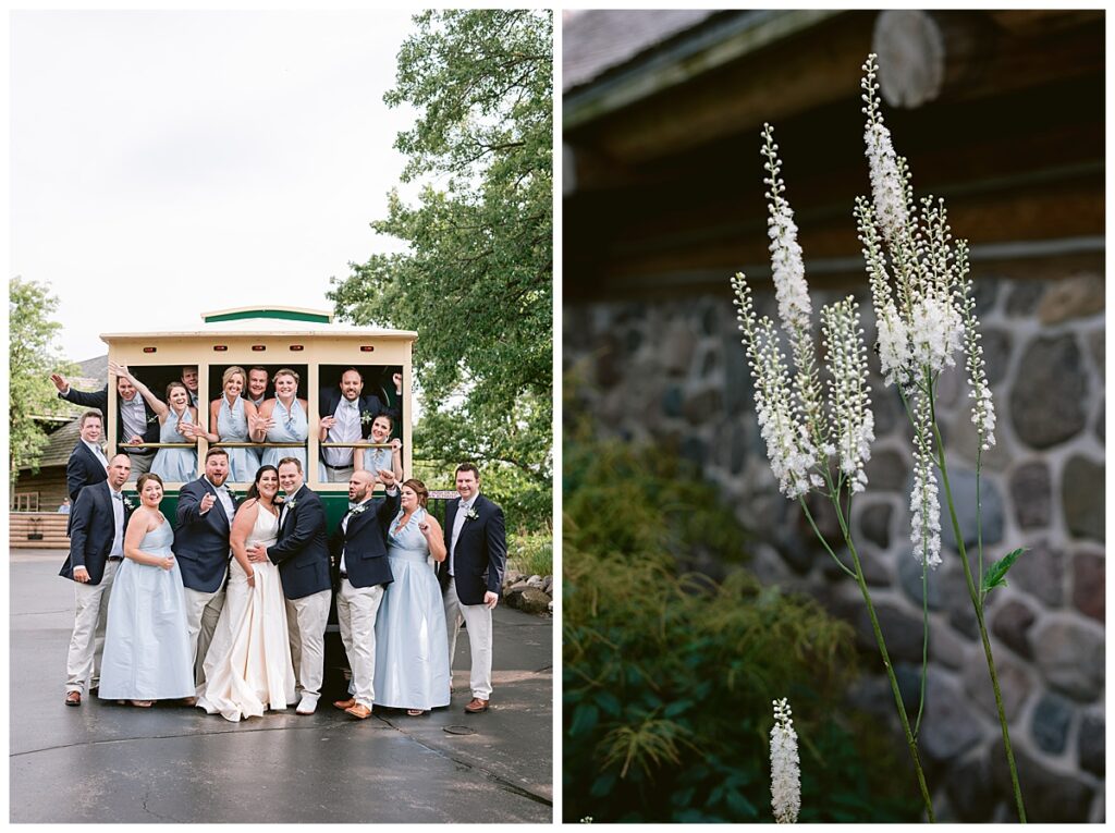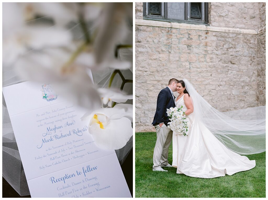 Vendors for the day included::// Ceremony:: Holy Name Catholic Church // Reception:: The American Club //Florist:: Diane McCuster at The American Club // Wedding dress:: Romona Kareza purchased at Annika Bridal// Bride’s earrings and Bracelet:: Julie Voss //Bride’s Veil:: Bride’s of France // Bridesmaid Dresses:: Lula Kate purchased from Bella Bridesmaids // Bridesmaid Earrings and Necklaces:: SJ Spence // Bridesmaid shirts and leggings:: Arden & Gold //Men’s Ware:: Brooks Brothers // Men’s bowties:: Knotty Tie // Hair and Make-up:: Kohler Spa// Stationery:: Kate Murphy Design // Caterer:: The American Club// Baker:: The American Club// Band:: Bella Divas //Video:: Cody Hanson of Exist Media // Artist:: Lief Larson of Wedding Painting by Leif // Bride’s Shoes:: Kaylee P // Trolley Company:: Discovery Coach // Classic car company:: Lee’s Classic Cars // Champagne Bottle: The Chicago Calligrapher :: Handkerchief’s E: Family Heirloom // Handkerchief Lettering: Etsy-A Bit Of Alexandria // Father of the Bride Cufflinks:: Everett Designs //
