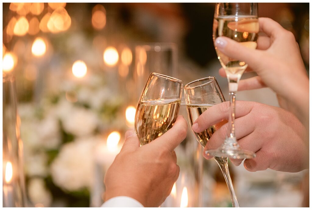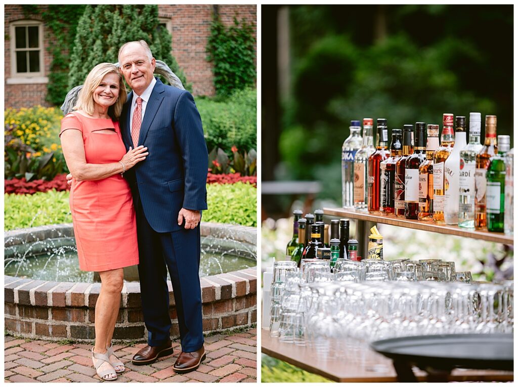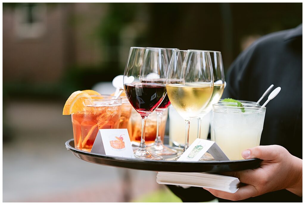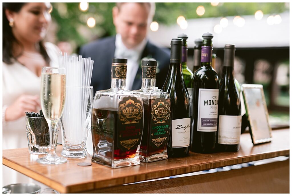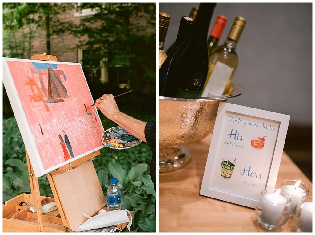 The coupe was wed at the beautiful and historic Holy Name Catholic Church, and then headed to the lakefront in a classic trolley and then Blackwolf Run Golf Course for photos. Upon arriving to their social hour, the couple celebrated with guests as they served their signature drinks and Lief Larson painted an exquisite piece for the couple as the reception was going on.
