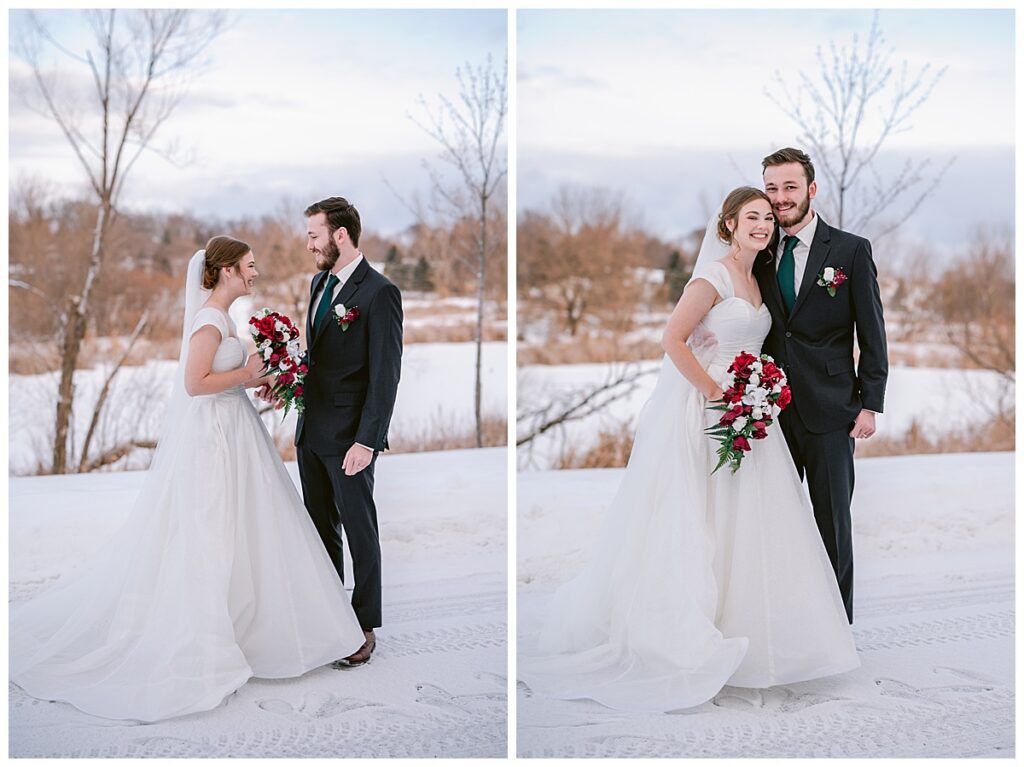 January weddings in Minnesota are not for the faint of heart—but Grace and Cole were rewarded with the most beautiful winter scenery. A fresh blanket of snow covered the ground, creating a clean, bright backdrop that made every photo feel classic and peaceful.