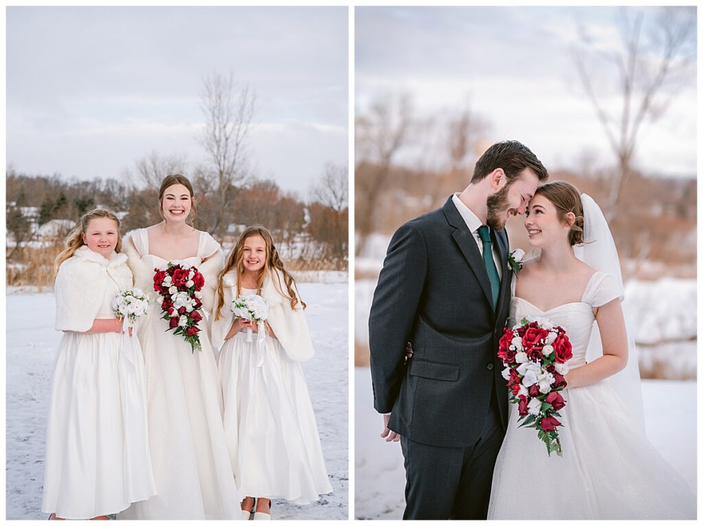 Grace and Cole’s wedding day was a beautiful reflection of their relationship faith-filled, intentional, and surrounded by people who love them deeply. From enduring the cold for snowy portraits to celebrating inside St. Michael Catholic Church, their day was heartfelt from start to finish.