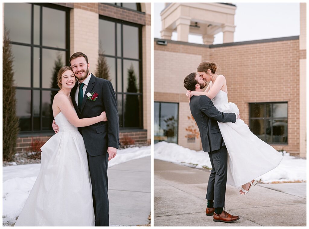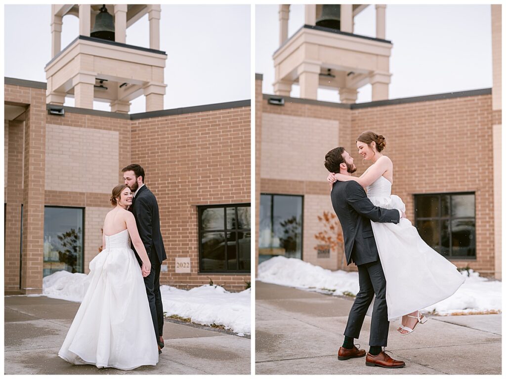 As a St. Michael MN wedding photographer, St. Michael Catholic Church is one of my favorite venues. The architecture, the natural light, and the reverent atmosphere make it ideal for couples who value faith and tradition. In the winter, the surrounding snow elevates the entire experience, offering endless opportunities for classic and romantic wedding photography.