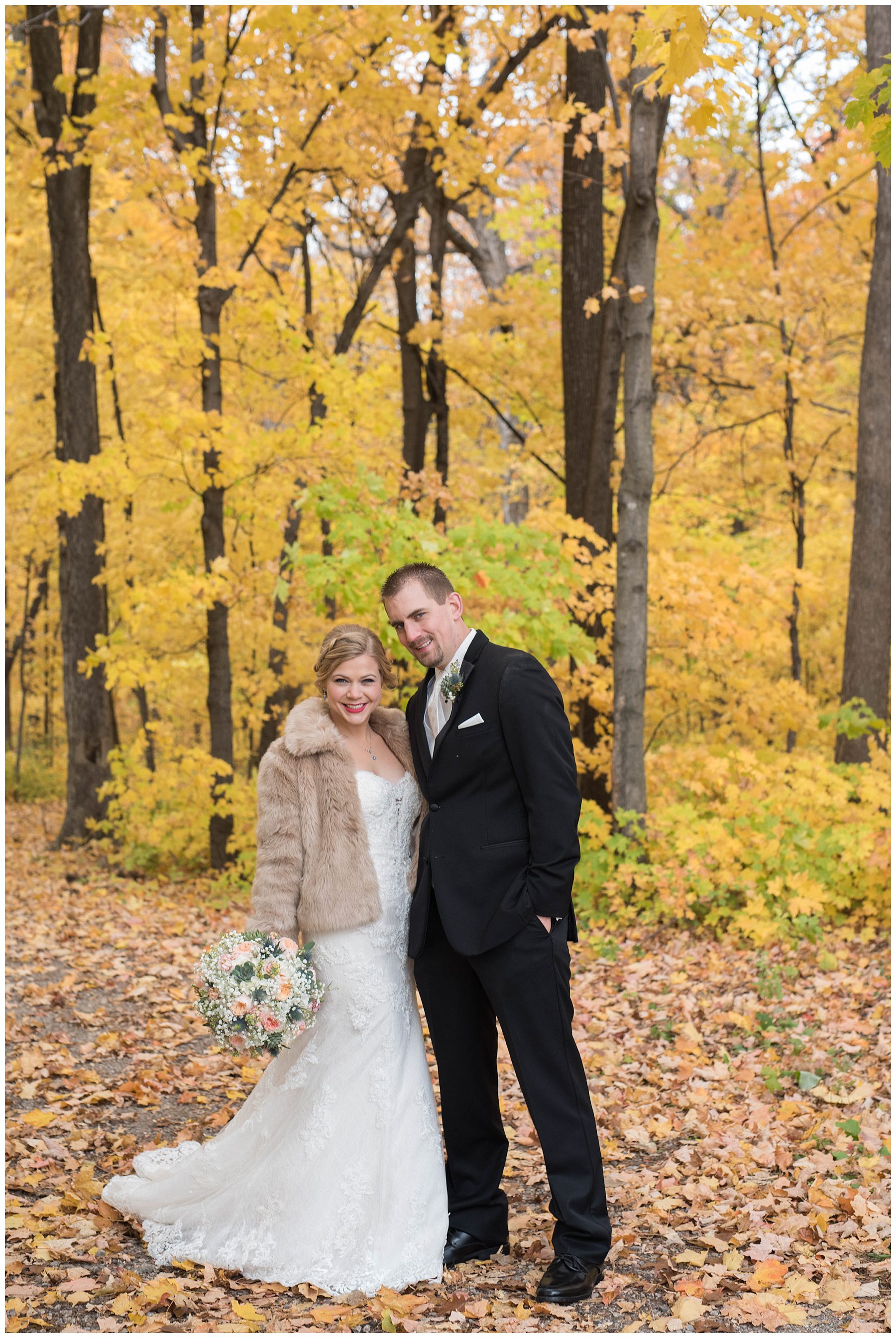 The last wedding of 2016 ended on such a high note when finding a forrest close to the reception area filled with yellow maples. Completely gorgeous to photograph Nicole and Cole.