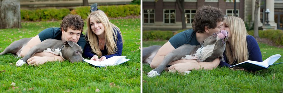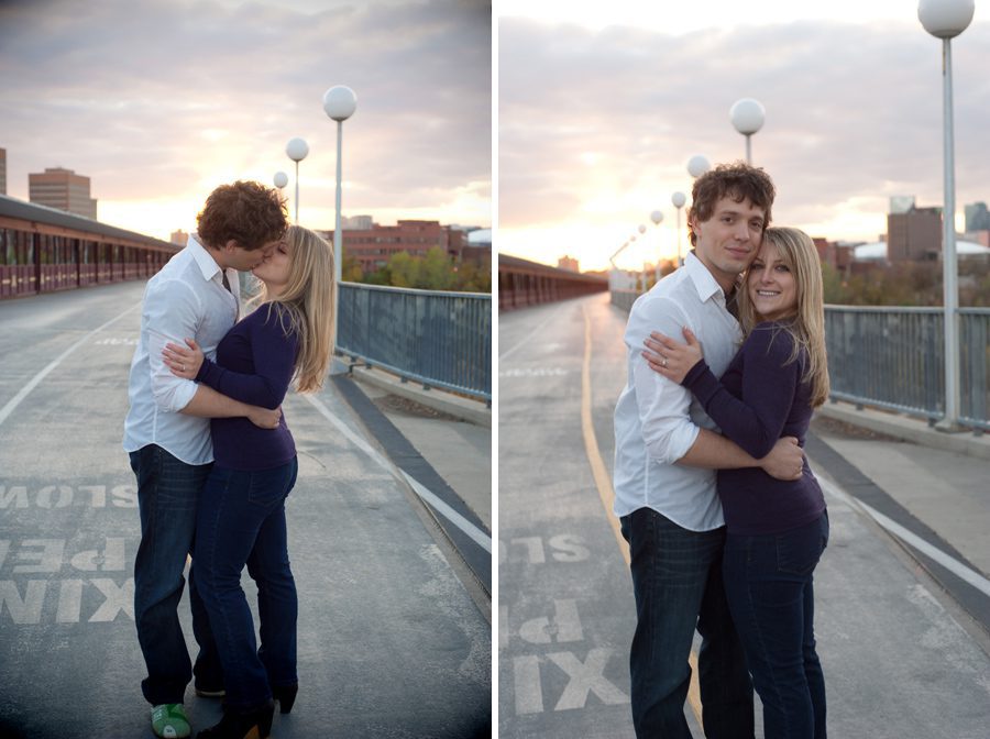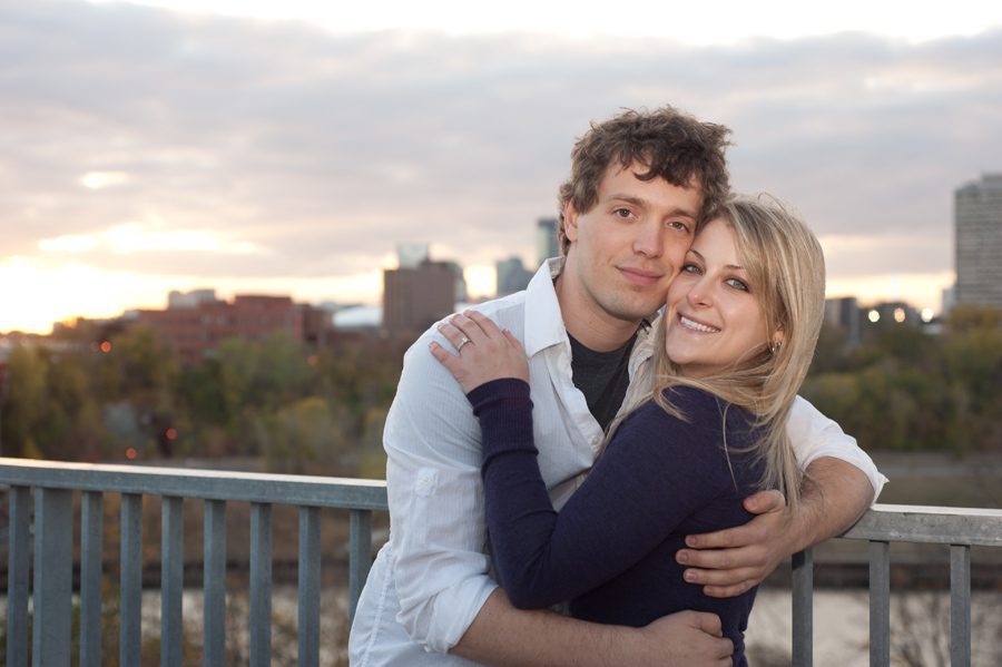 On this frigid day of January in Minnesota, I wanted to bring you back to the beautiful fall weather! I did Susie and Alex’s engagement session back in early October while the leaves were golden and the day was a perfect 70 degrees. This sharp, yet witty couple, amused me as we chatted on St. Anthony and Main in Minneapolis. The two brought along their beautiful puppy and as we strolled I became more excited to shoot their August wedding! We ended at the place where their story began, the chemistry building on the U of M campus.