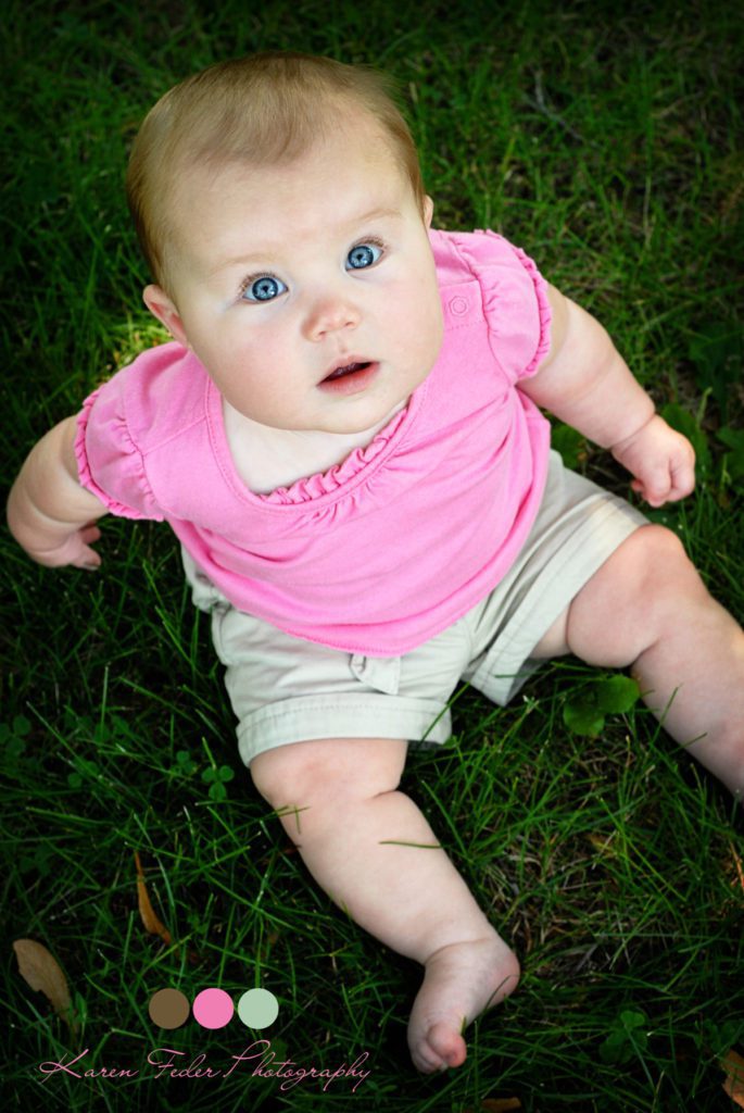 To say she is easy going is an understatement! This little six month old was so easy to photograph. I could not get enough of her sweet smiles and bright blue eyes! Even though the weather was a scorching 90+ degrees with a heat index that made me sweat through my tank top, you would never know by the way she was hamming up the camera! Her newborn photos seemed just as easy (see HERE) and it has been so much fun to watch her grow. I am looking forward to shooting her 9 month photos this fall, but until then, she tops the charts (at least in my book) with the chill baby award!