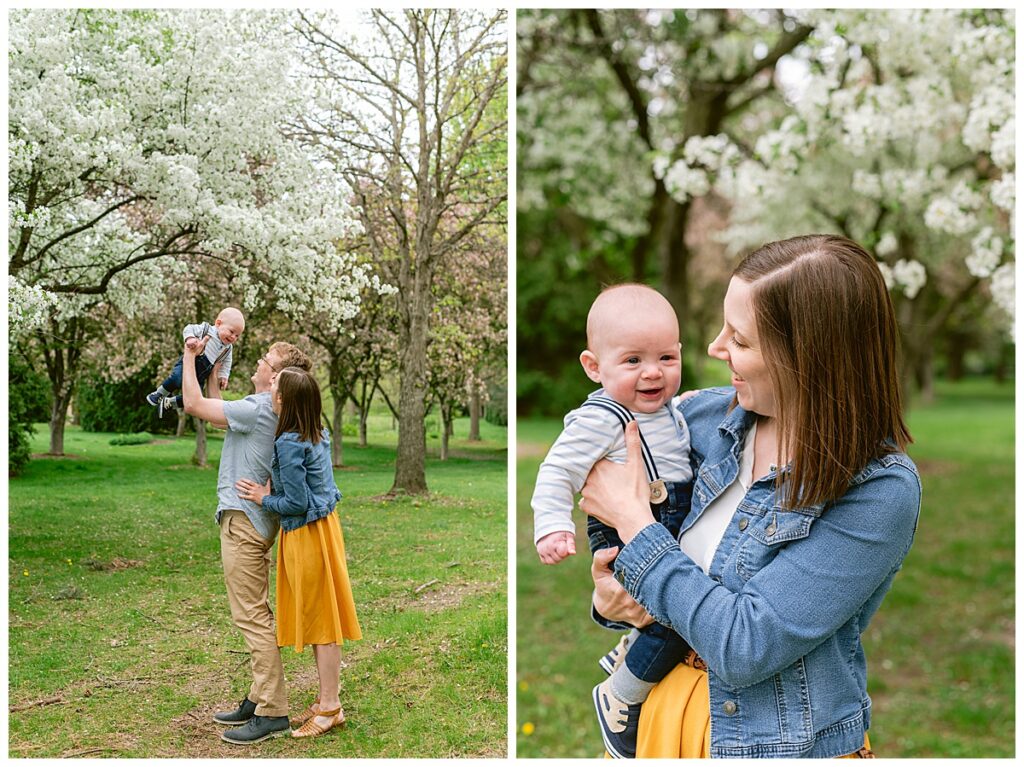 Spring was in full bloom at Arneson Acres Park in Edina where I hosted my first round of mini sessions for the 2022 year. The sweet Sommer family met me there with their little guy of only 6 months. Kristen was a bridesmaid in a wedding I shot a few years back and as she and her husband welcomed their first little one, I could not have been more thrilled that she remembered me and took the time to reach out to book a session.