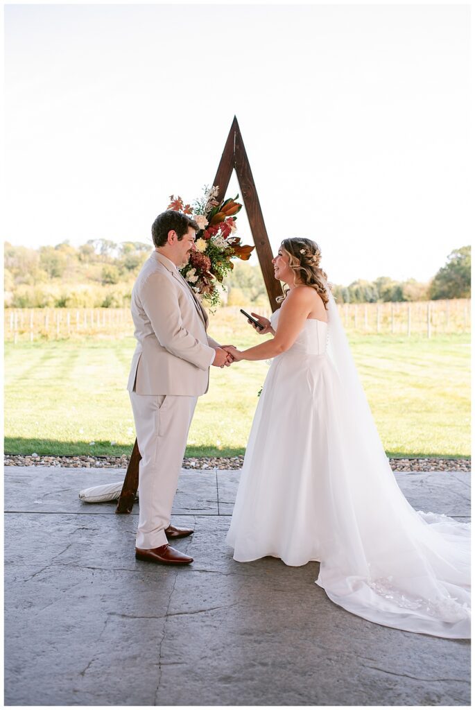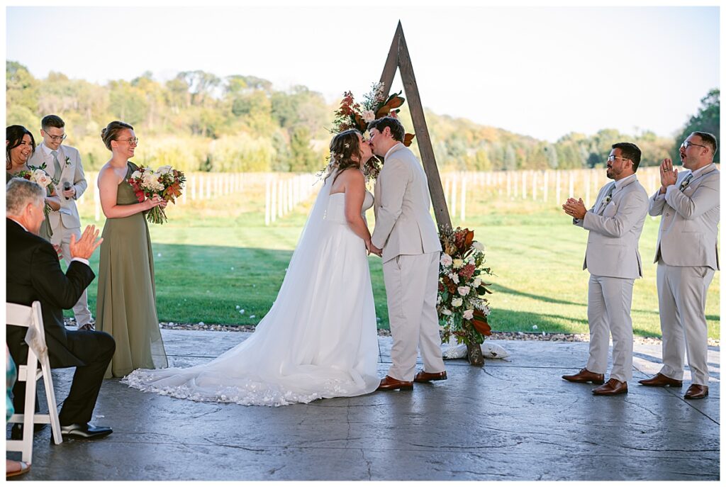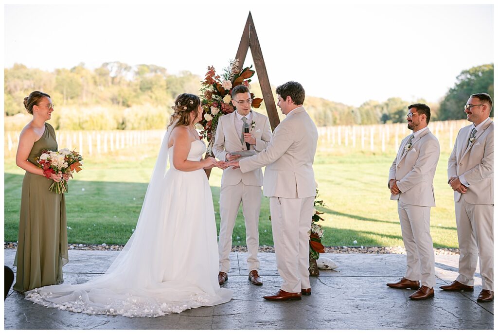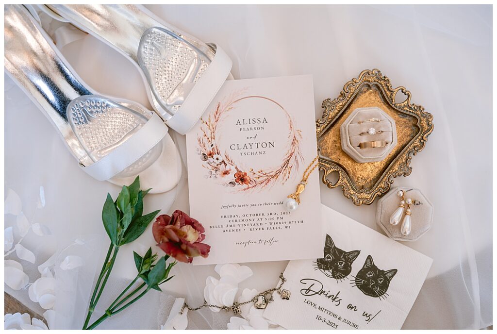 October 3rd was one of those unforgettable fall days — the kind that surprises you with summer warmth and sunshine instead of the usual crisp chill. Alissa and Clayton’s wedding at Belle Âme Vineyard in River Falls, Wisconsin, was nothing short of magical. The unseasonably warm weather made for the most stunning light all day long, and guests soaked up every moment of the sunshine.