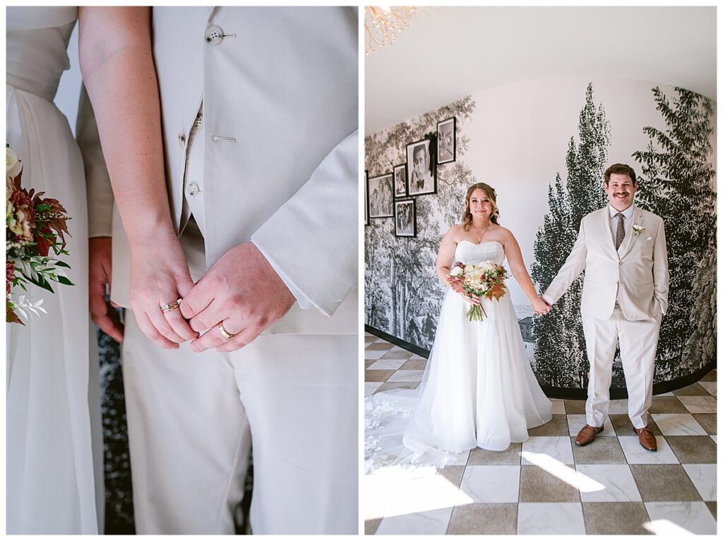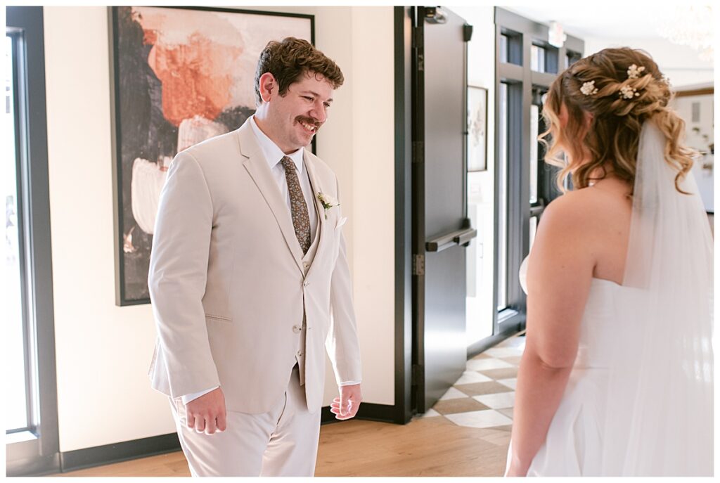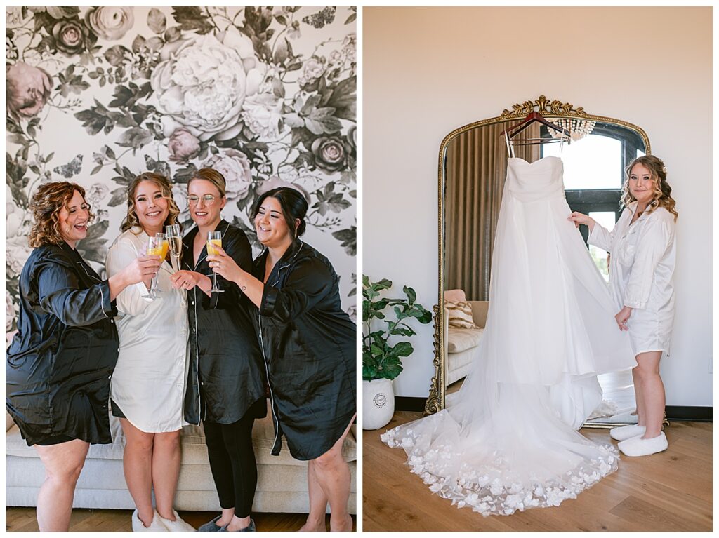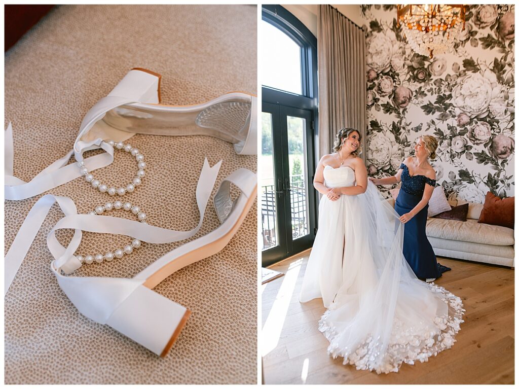 The morning began in the most beautiful bridal suite, where Alissa and her bridesmaids spent the early hours getting ready. The space was filled with laughter, music, and anticipation. Her mom helped her into her gorgeous gown from Vow’d Weddings, while her bridesmaids looked on with joy and happy tears. Hair and makeup by @smokeshowstudiomn completed her timeless look — effortlessly elegant and radiant.
