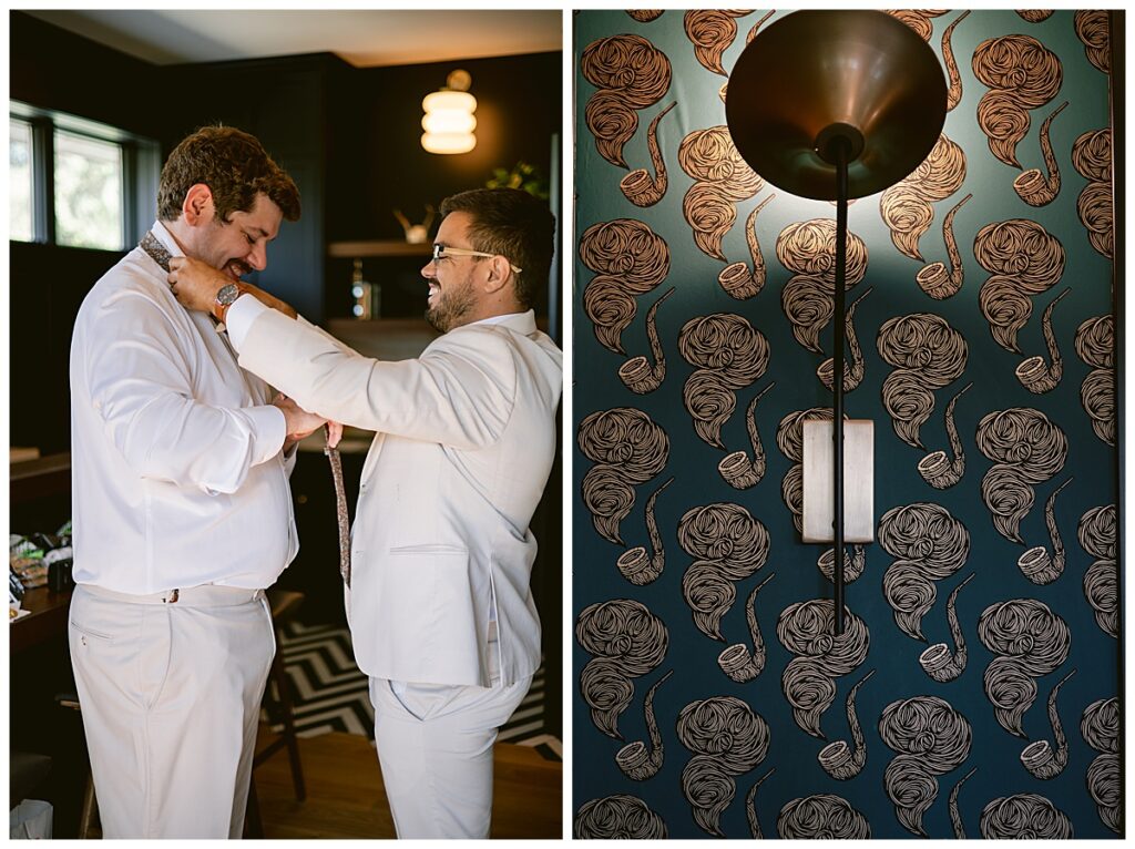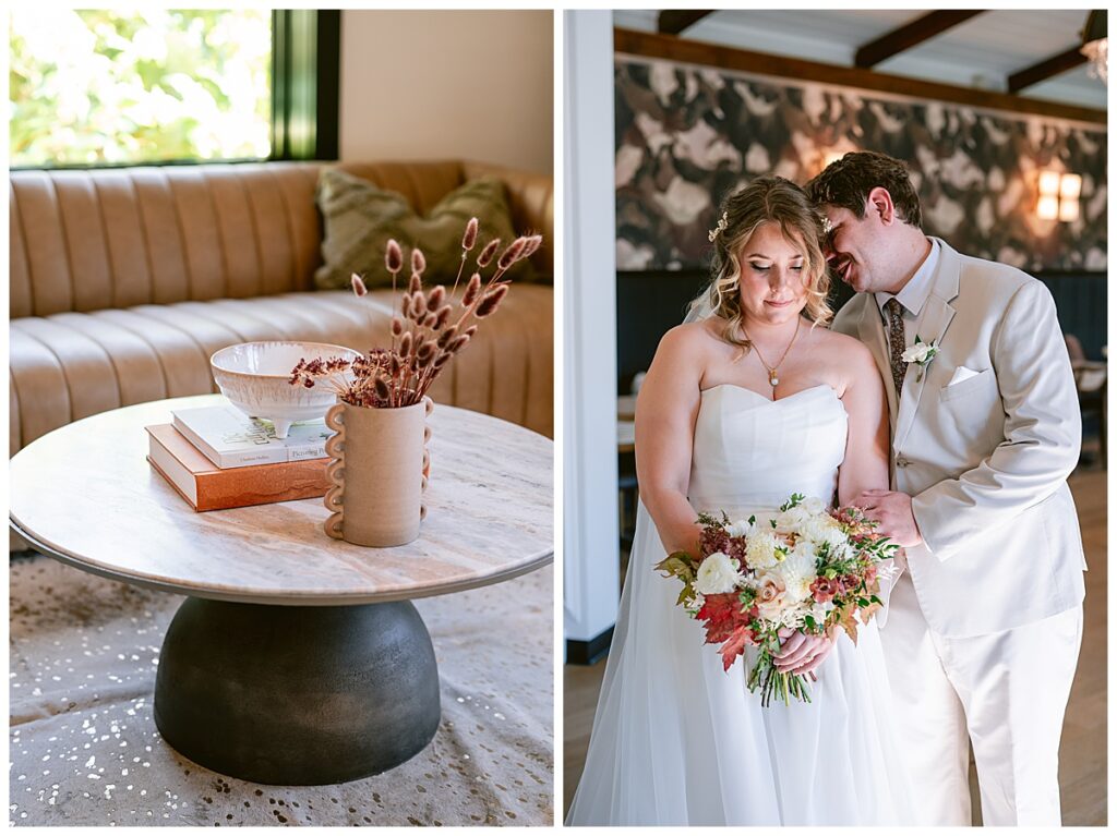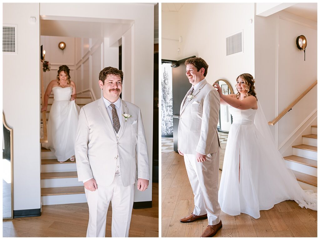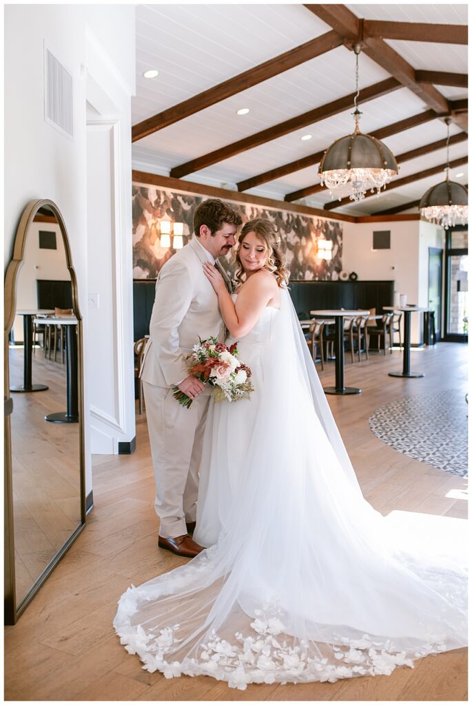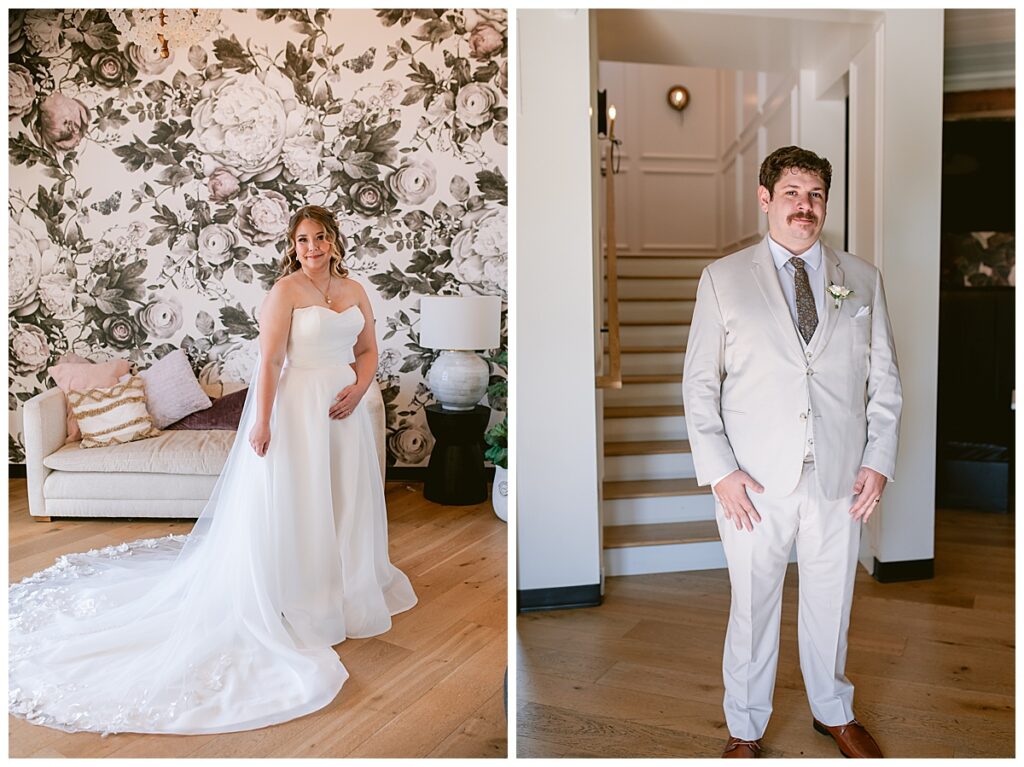 Before the ceremony, Alissa and Clayton shared an emotional first look inside and then headed outdoors to read private vows to one another, a heartfelt and intimate moment that truly captured their love. Afterward, we explored the property for their portraits from the charming vineyard paths to the airy patio and indoors with all the eclectic backdrops. Every corner of Belle Ame provided a gorgeous backdrop, and the two of them simply glowed.
