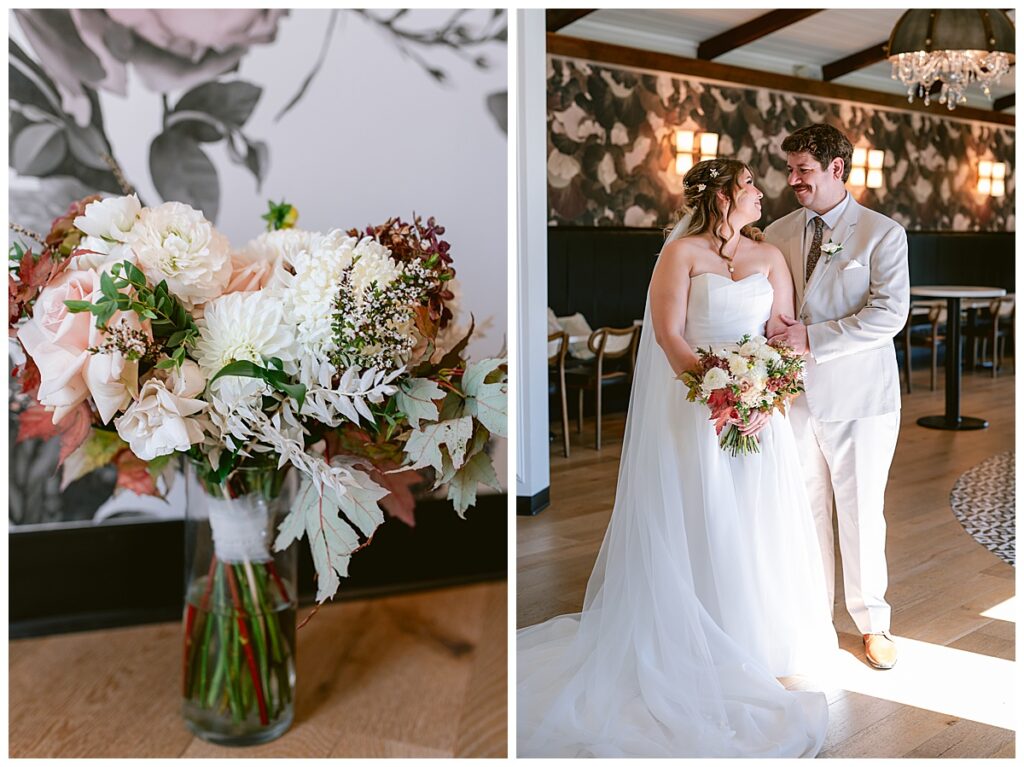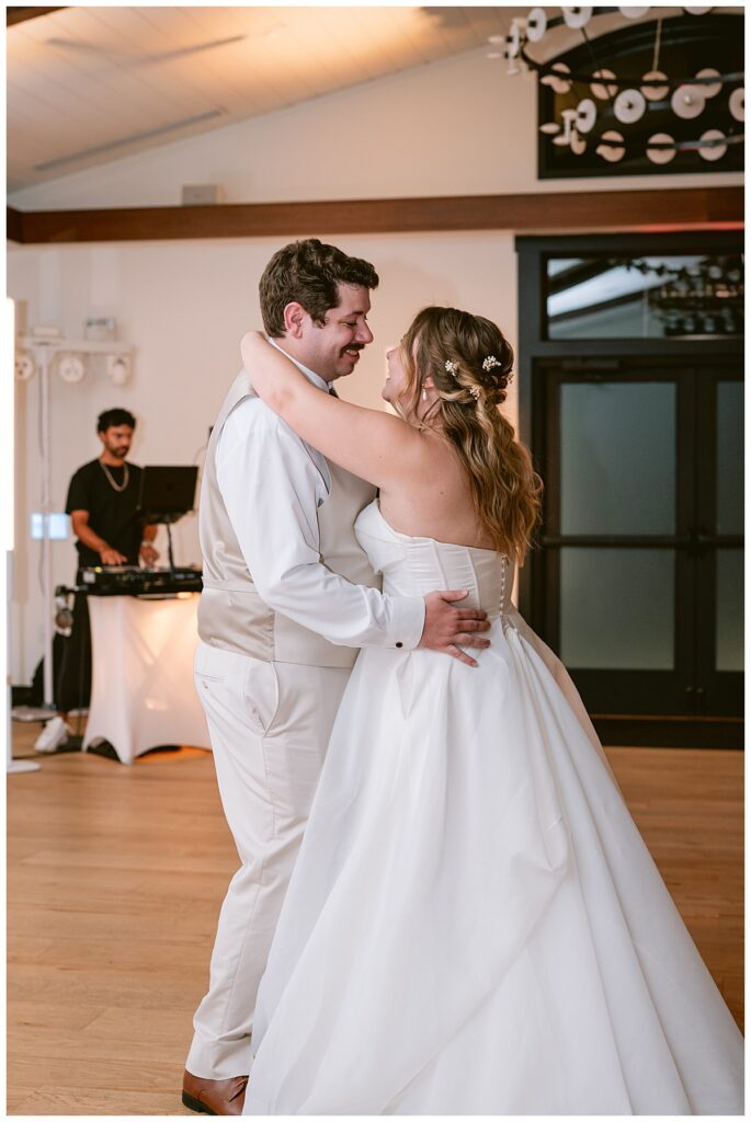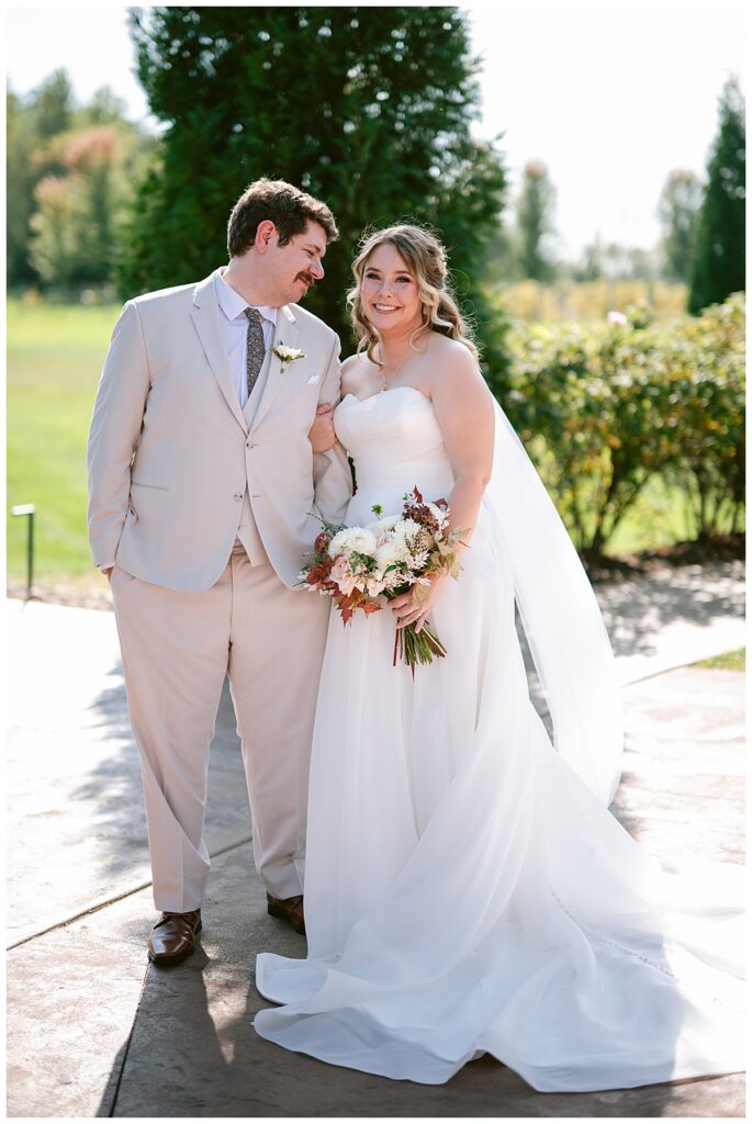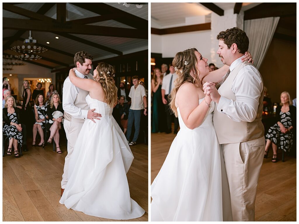 After the “I do’s,” guests enjoyed an unforgettable reception planned and coordinated by Tara of Blue Stone Events. The patio and winery spaces came alive with conversation, dancing, and golden light. Dinner by Fork and Flair was delicious, followed by a stunning cake from Three Schweet Sisters that was almost too pretty to cut. The florals by Florology added the perfect romantic touch, complementing the vineyard’s natural charm.