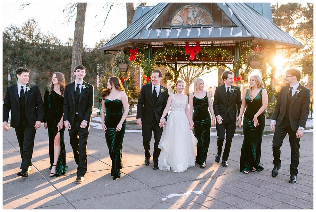 As the sun began to set, the wedding party ventured outdoors to capture the golden hues of twilight at a beautiful gazebo. The winter landscape provided a stunning backdrop as the laughter and joy of the celebration echoed in the crisp air. It was truly a beautiful day to celebrate Raina and Andy. Congratulations!!