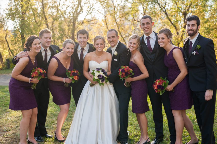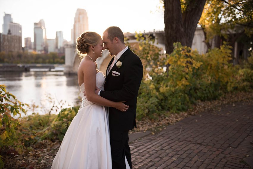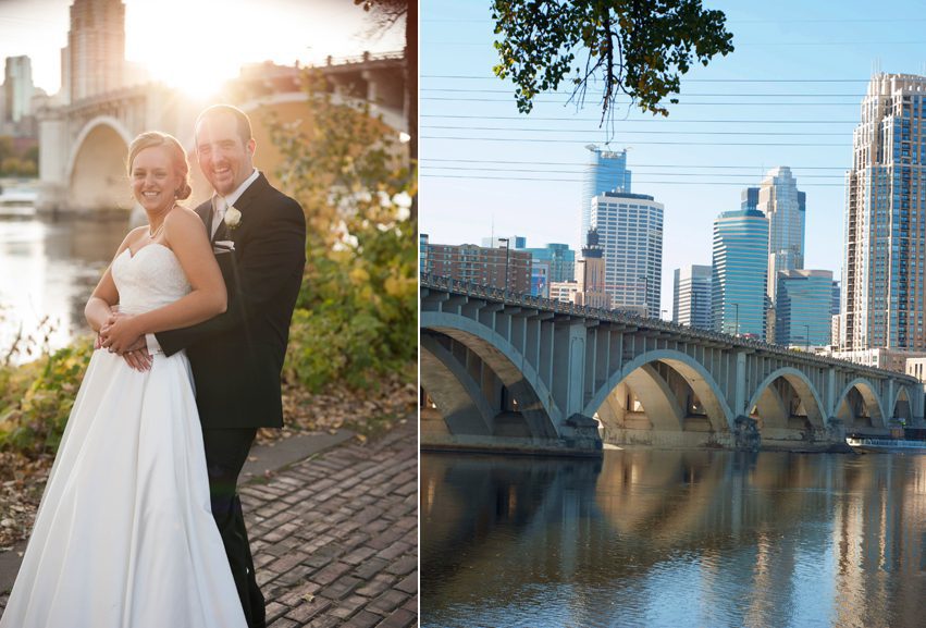 Their October wedding day was filled with family and friends who had waited for this day to come. The weather had a nip in the air as the couple and their good friends headed to the iconic Stone Arch Bridge of Minneapolis and then to the place where Sam attended school, the University of Minnesota. It was incredible!