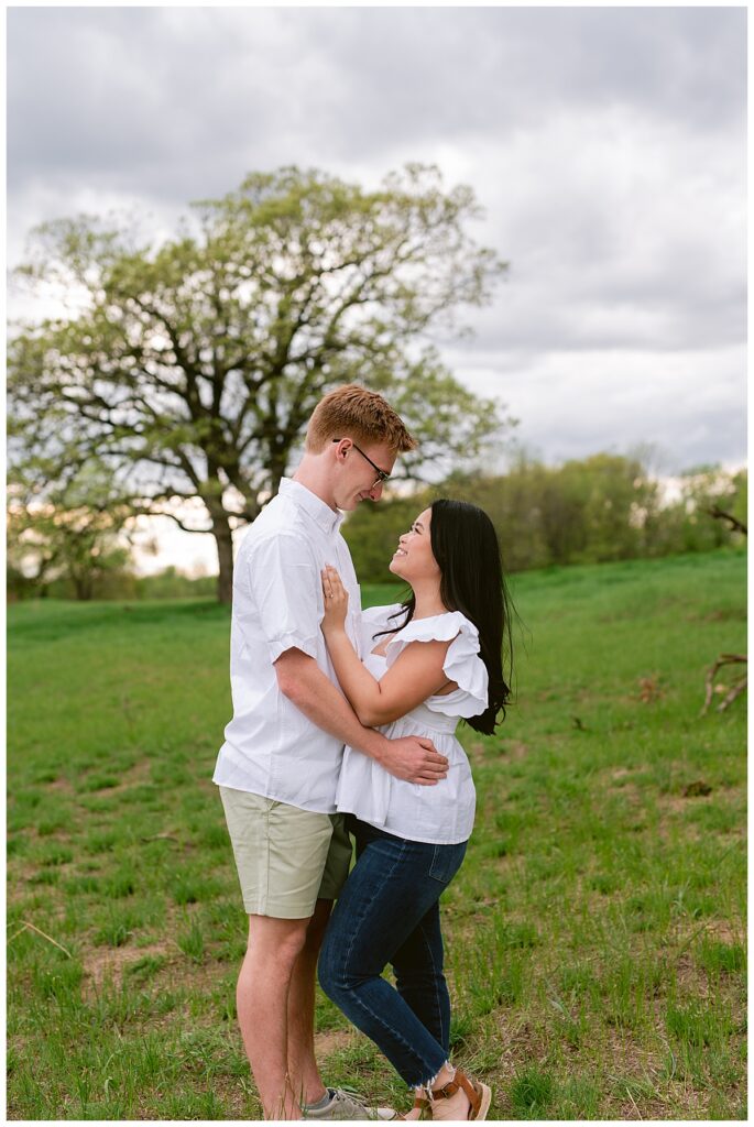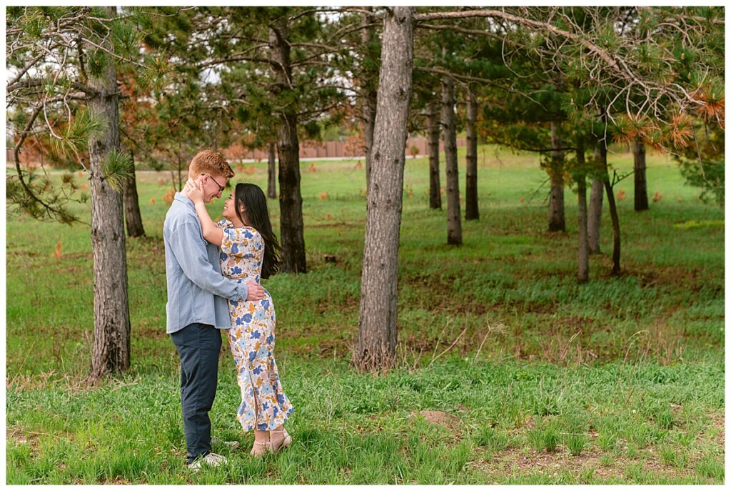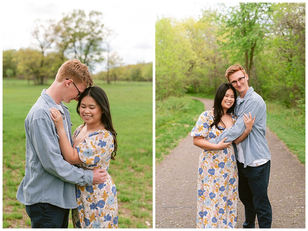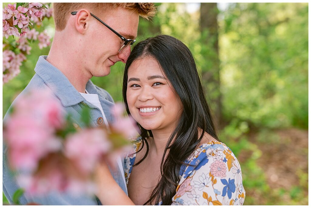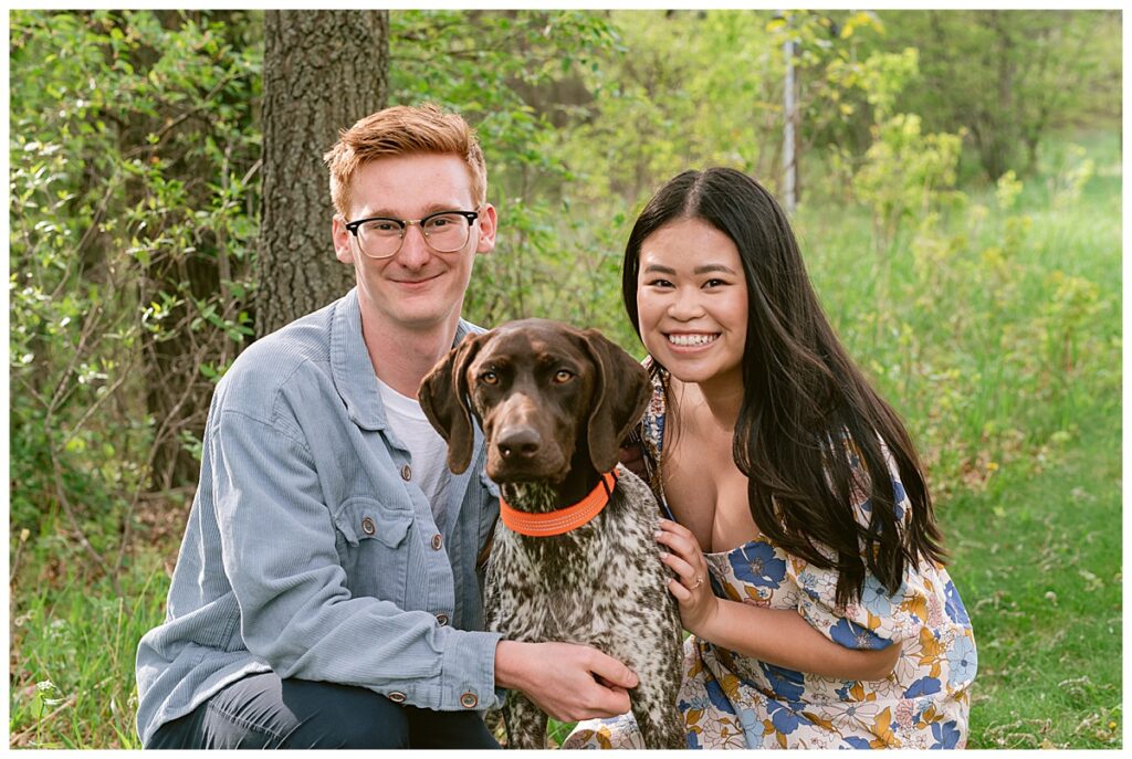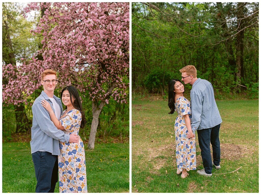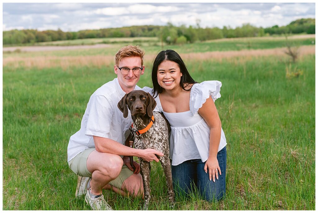 Lizzy and Luke chose Bunker Hills Park for their engagements. As high school sweethearts, they had also done prom photos here and wanted to utilize the beautiful open fields, blooming flowers and have a place for their 6 month old pup to run when they weren’t snuggling him in the photos!