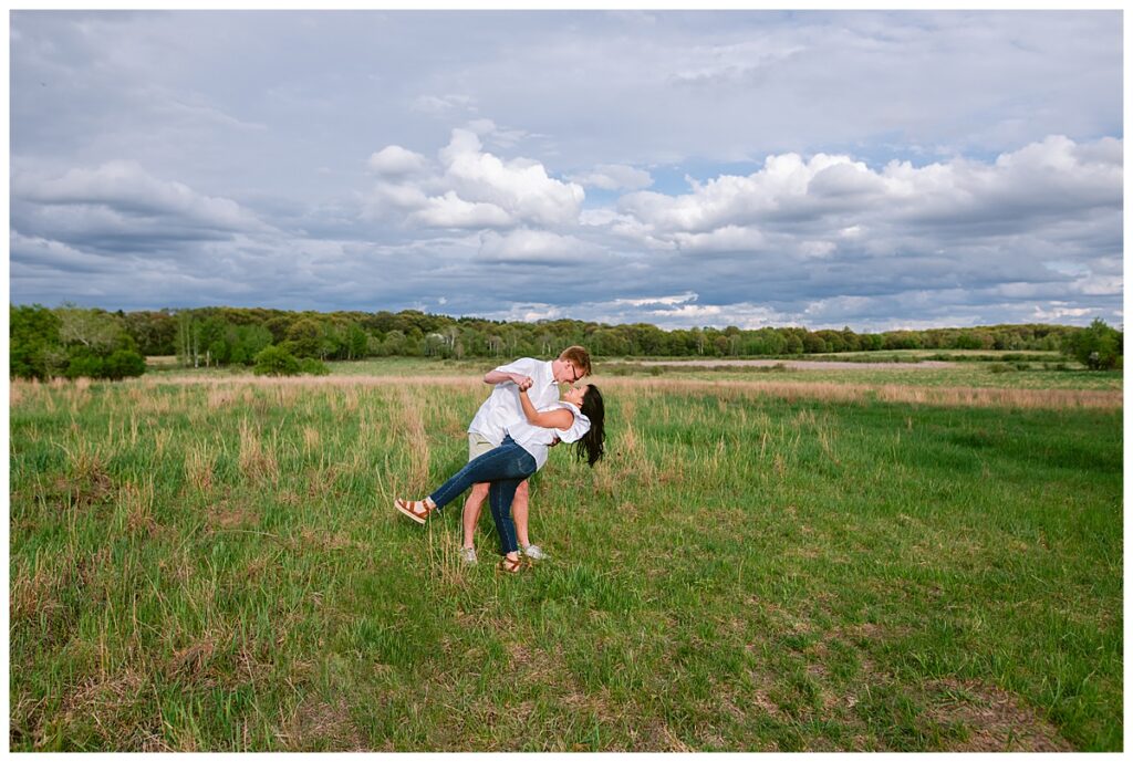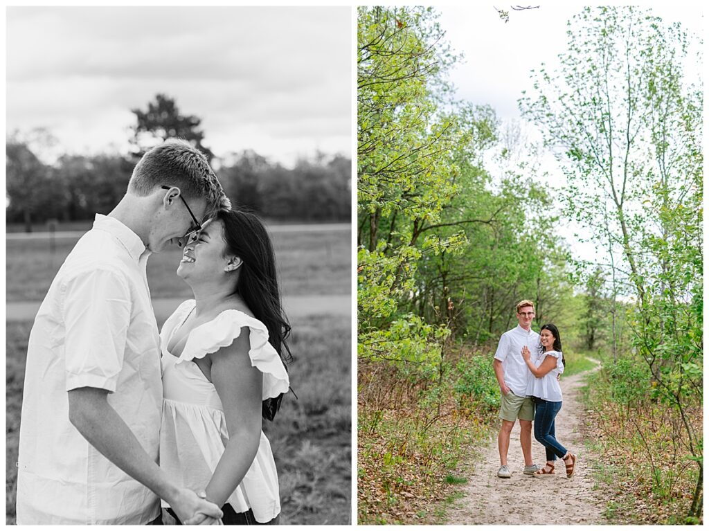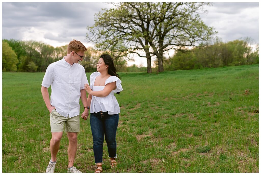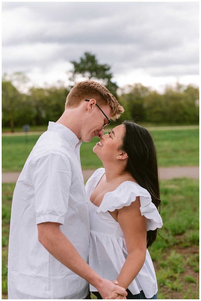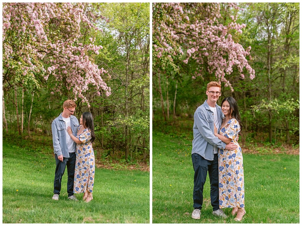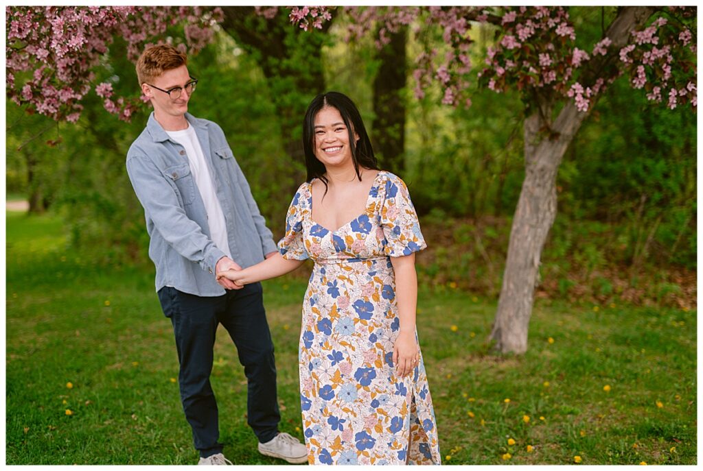 Lizzy and Luke chose Bunker Hills Park for their engagements. As high school sweethearts, they had also done prom photos here and wanted to utilize the beautiful open fields, blooming flowers and have a place for their 6 month old pup to run when they weren’t snuggling him in the photos!