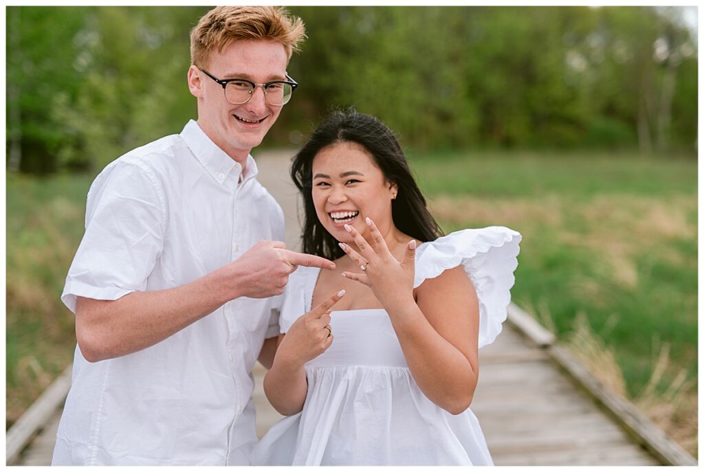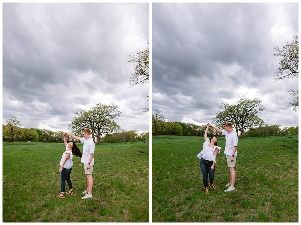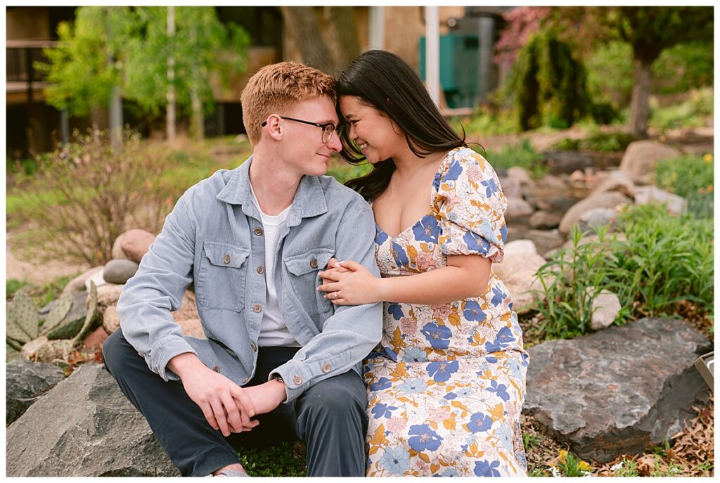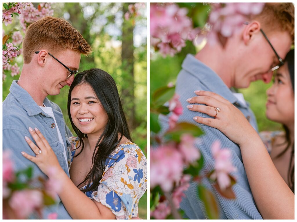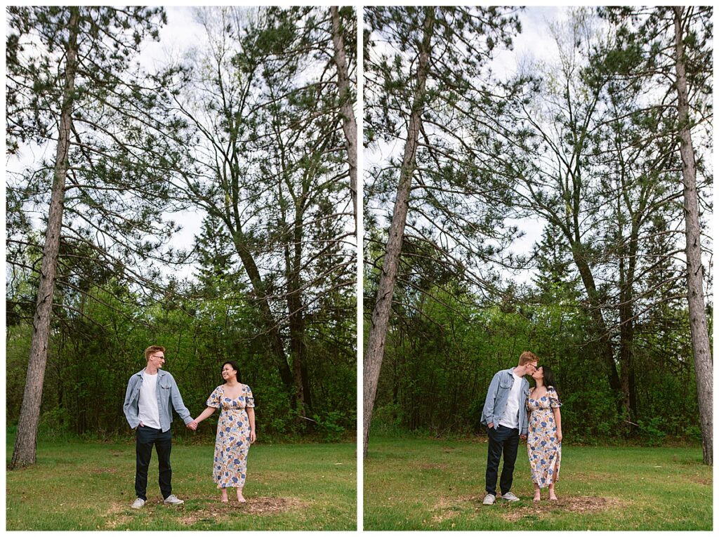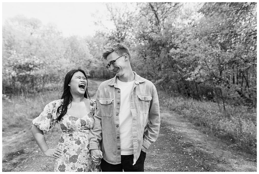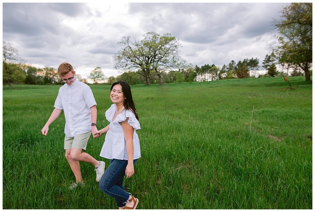 Lizzy and Luke chose Bunker Hills Park for their engagements. As high school sweethearts, they had also done prom photos here and wanted to utilize the beautiful open fields, blooming flowers and have a place for their 6 month old pup to run when they weren’t snuggling him in the photos!