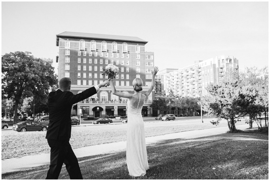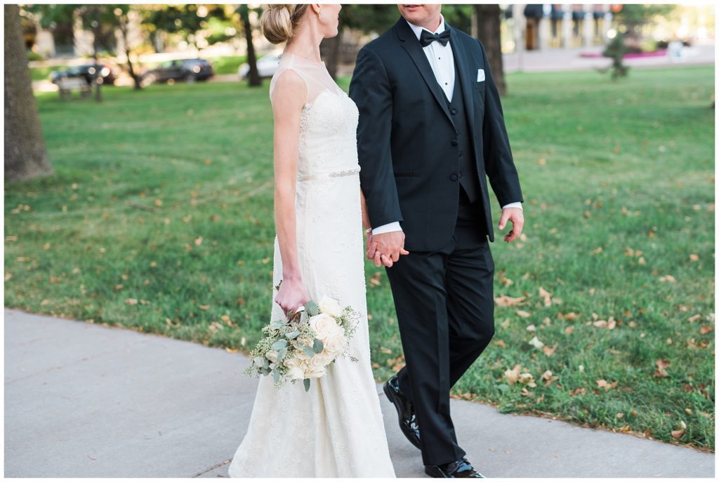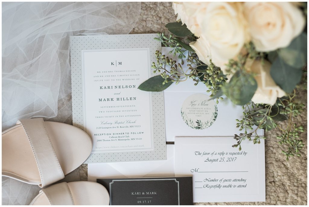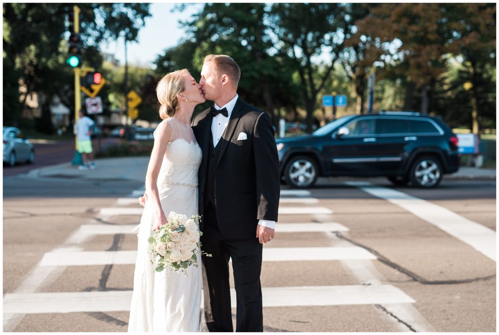 Their September wedding day couldn’t have been more perfect. The sun was shining, there was a slight breeze, and friends and family from all over the United States came to join them in celebration at Calvary Church. After the ceremony guests and the wedding party headed to the classic Calhoun Beach Club for dinner catered by D’Amico. Kari’s Catherine Deane Cora gown from Posh Bridal was of perfect elegance when parried with the Tommy Hilfiger lavender gowns her bridesmaids wore. Pops of ivory roses and eucalyptus bouquets that were handmade by Kari added yet another touch of beauty to the day. Walking along the Minneapolis lake Calhoun provided a perfect backdrop for the wedding party and made for beautiful photos as the sun was setting.