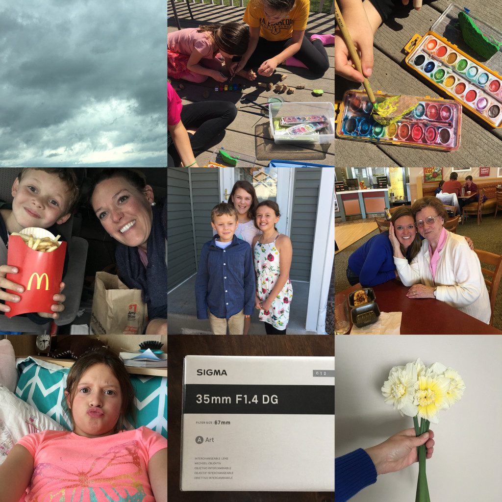 This past week we spent some time with my sisters and their families, went on a grandma date, got through a spring snowstorm and gloomy days, painted rocks outside, my new baby arrived ( my lens!) and finally picked some daffodils! I am so happy to have the spring weather!