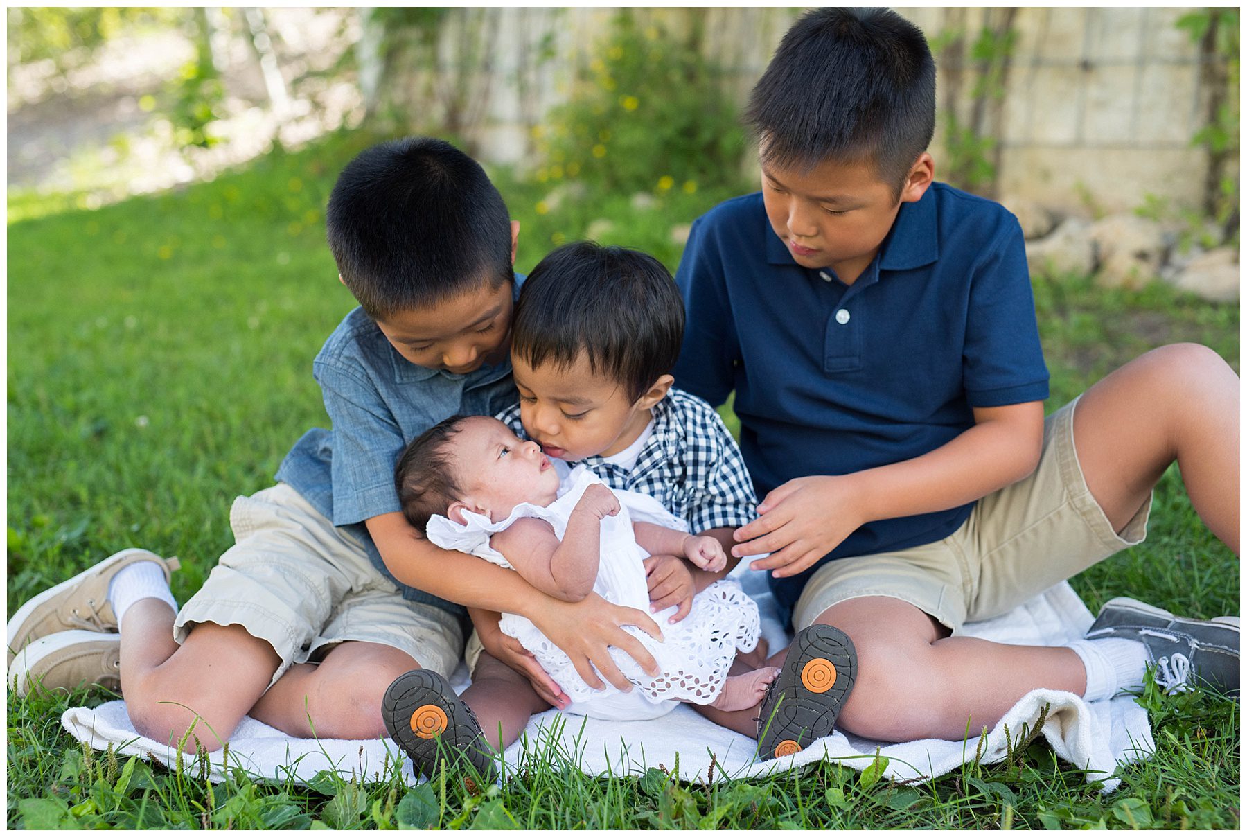 When we were ready to start a family, Liz wanted to adopt first, but the financial aspect was a little daunting. We decided to see what happened and if we weren’t expecting after one year, we would start the adoption process. After a number of months, we decided that we wanted to start the process and not wait. We adopted Henry in 2008 and Walter in 2010, both born in S Korea. We talked about adopting an older child through the foster care system when the boys were older but in the fall of 2014 we heard about a birth family wanting to be matched with an adoptive family. We prayed about it and decided to moved forward. Winston was born in May and brought so much joy to our family. The boys can’t get enough of him. In February this year we were asked if we would like to adopt Winston’s biological sibling due in July! A huge surprise! Since we had just finished Winston’s adoption we weren’t sure how we would be able to come up with what we needed for the fees. Our parents encouraged us not to let money be the reason we said, ‘No.” We prayed about it and gave the finances to God, knowing He could provide. He met each need we had and provided so many friends, family and strangers to help down cover our adoption fees! In July we drove down south to wait for Ruthie to arrive. She was born in early July and was welcomed home by 3 enthusaistic brothers!