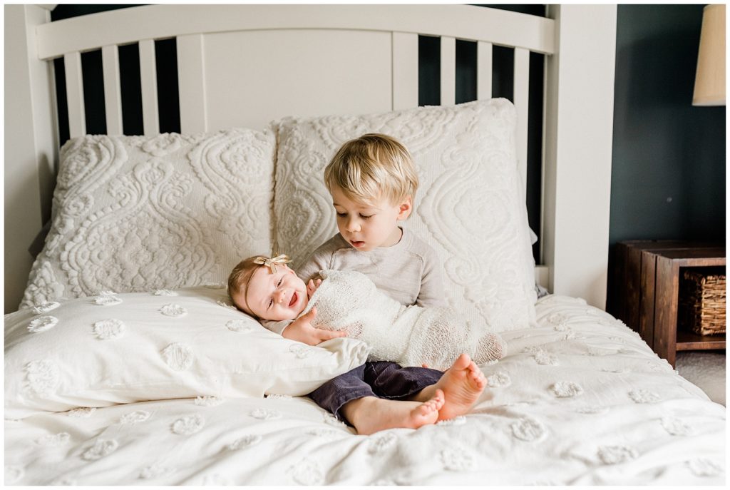 My newborn sessions take place in your home whether it’s a quiet morning with your first baby or a full, beautifully busy house with siblings running around.
