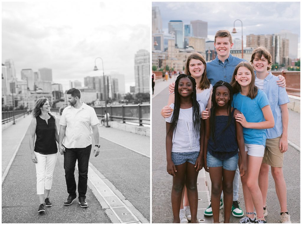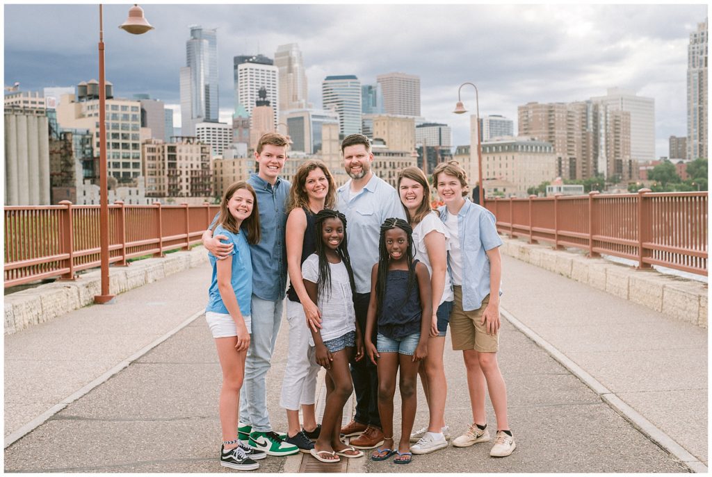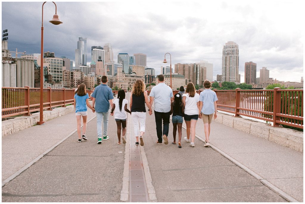 After the ceremony, the wedding party changed into Western attire as a surprise for guests and we headed downtown for photos. The weather took a turn for the worst and rains came just as we arrived at the Guthrie Theater. Thankfully we were able to used the beautiful space for group and family photos and by the time we finished, the rain cleared and we were able to head around Mill City for photos.