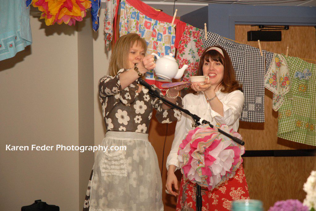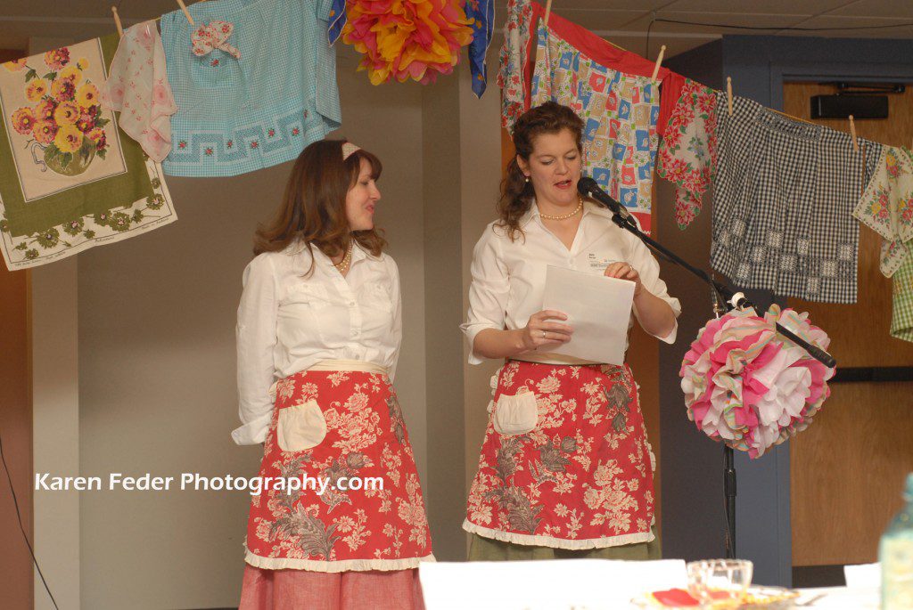 Our leaders for the year, Jen and Rachel, reading out of a 1950’s home ec book on how to treat our husbands. I seriously laughed; one of the “rules” was to always wear make up and to never let your husband catch you with bad breath… um that never happens at my house….