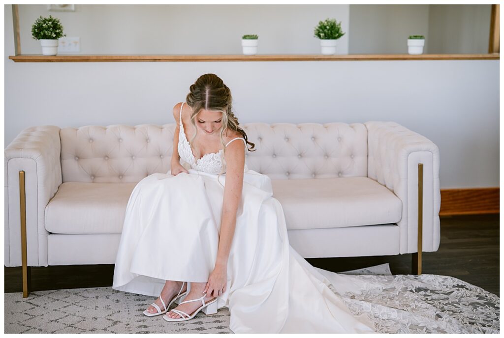 On the morning of their wedding, Sidney got ready in her childhood home, surrounded by her bridesmaids in soft, beautiful dresses from BirdyGray. Her hair was styled to perfection by Alyssa Hastings, and she slipped into her elegant gown from Vow’d Minneapolis and her classic Tecovas boots—a subtle nod to the country charm woven into their day. Meanwhile, Ryan and his groomsmen, dressed in timeless pieces from Men’s Wearhouse, prepped with anticipation, his Dan Post boots from Pleasant Hills Saddle Shop setting the tone for a laid-back yet refined celebration.