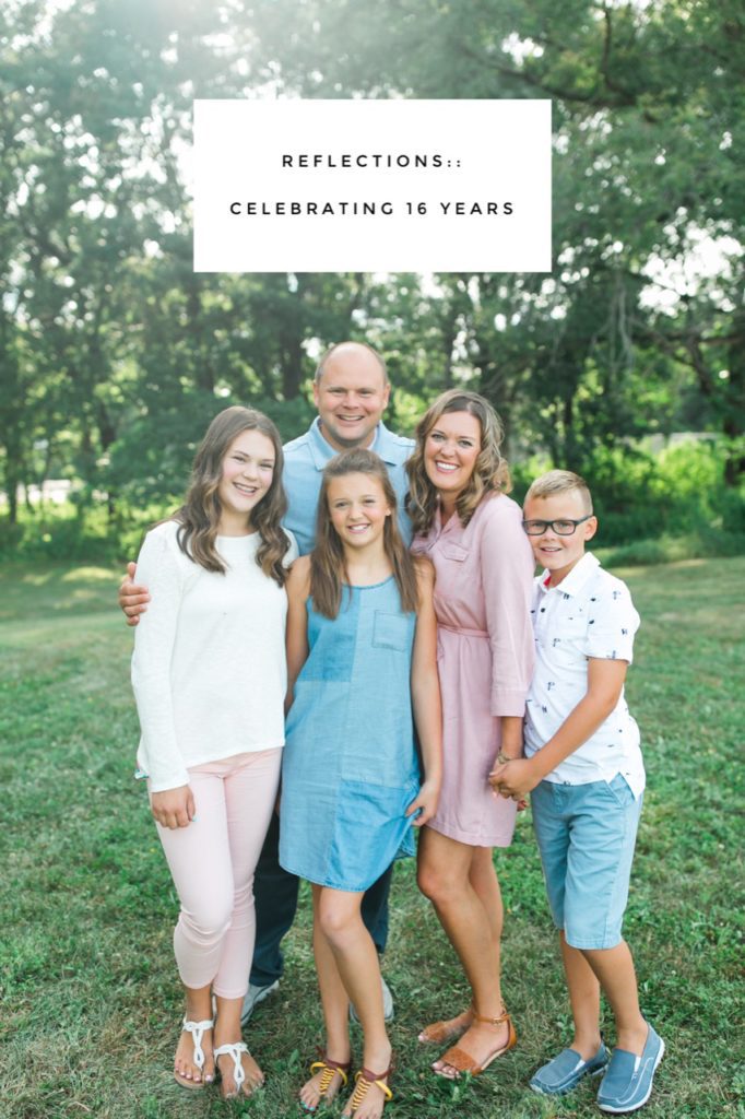 As I sat down to think of all the things we have been through together in the past 16 years, I thought about how we have been broken, tired and beat down. We have struggled through loss (babies, homes, friends and desires). We have traveled. We have learned. We have struggled financially. We have hiked, ran, biked, climbed, canoed and camped together. We have struggled in communication. We have laughed. We have fought. We have parented. We have encouraged and even discouraged one another. We have cried together. We have missed each other. And we have loved.