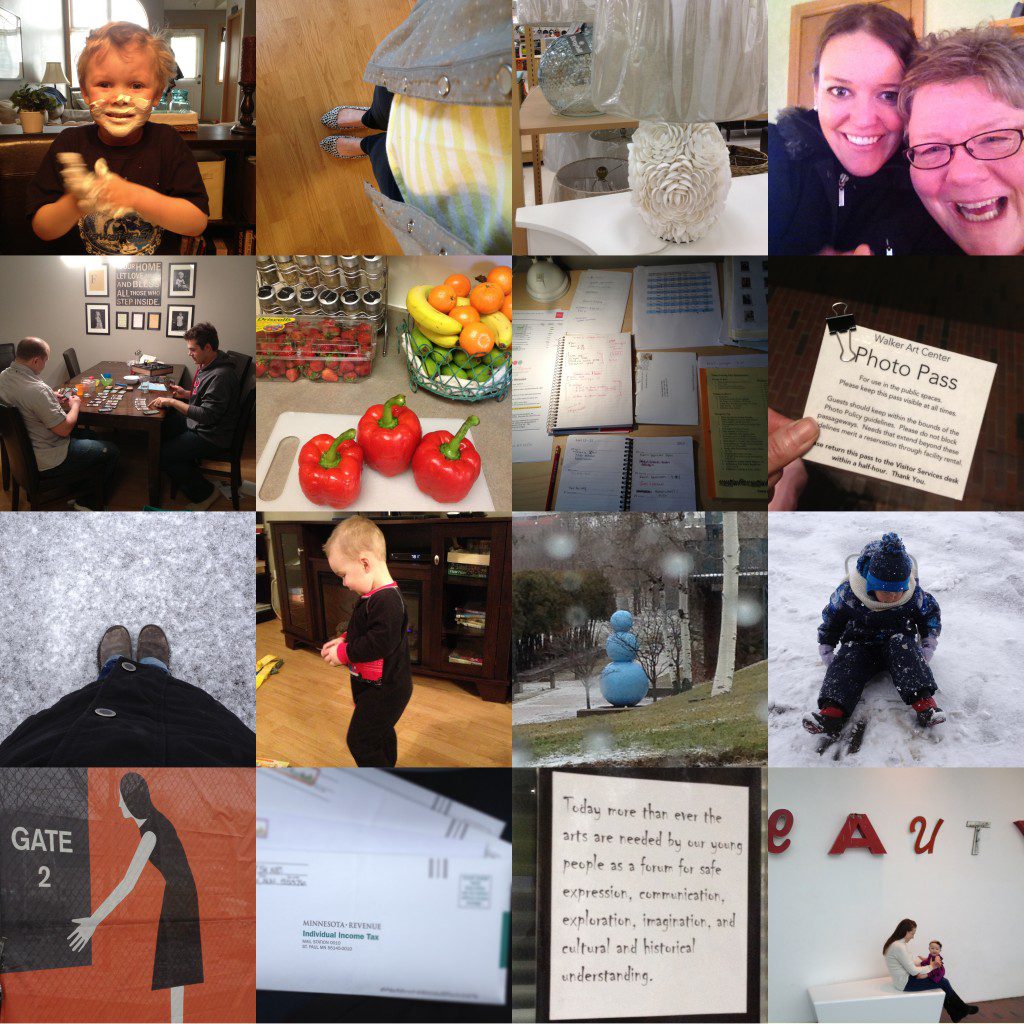 This week, through shoveling, scraping and washing snow pants 3 times, we got in a date night, a shopping trip, dinner with friends and their 18month old son, a trip to the Walker, and smoothies!! We mailed off our dreaded taxes, stopped by to have coffee with my friend and old neighbor, had a shaving cream day with Ben, had 2 spring sessions get re-scheduled because of the weather and stayed home with the kids because of a snow(ed in) day!