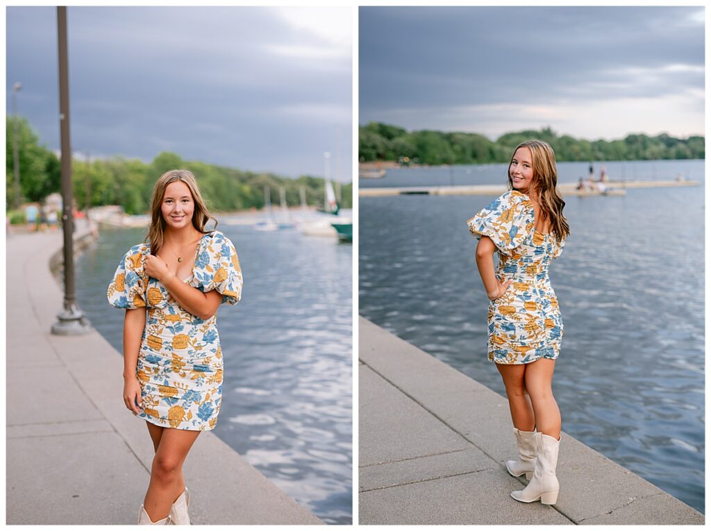 If you’ve never spent time in Wayzata, Minnesota, it’s the perfect place for a photo session or just a lakeside stroll. From charming shops to lakeshore views, it was the ideal location to highlight Abbie’s fun, vibrant energy.