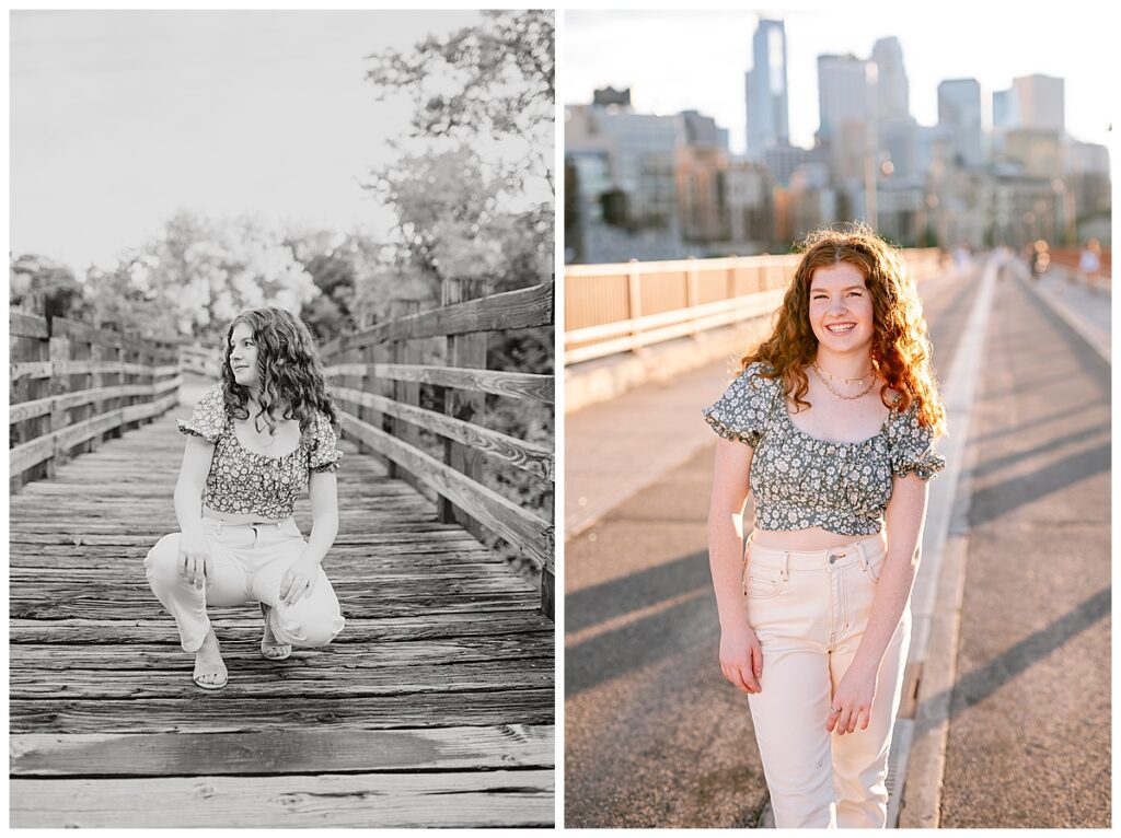 Abbie’s senior photo session in downtown Wayzata was absolutely perfect. The weather couldn’t have been better—sunny skies, a soft breeze off Lake Minnetonka, and golden hour light that made every shot glow. It felt like the whole evening was designed just for her.
