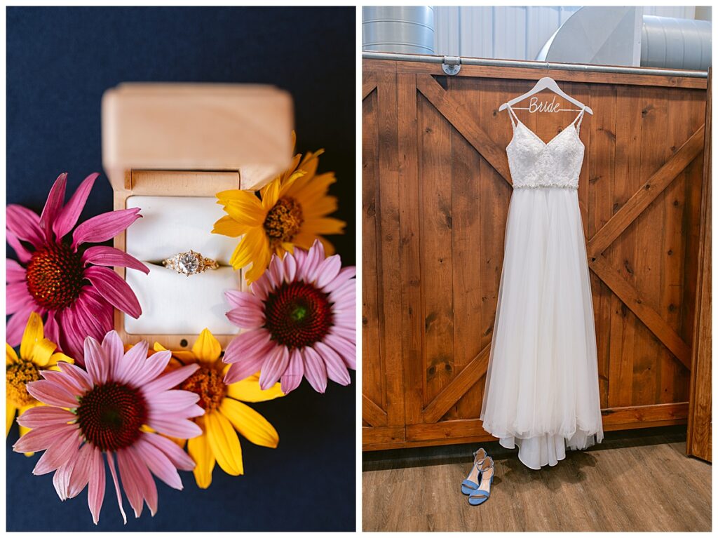 Kelly and Adam’s rings were a combination of beautiful sentimentality, sourced from Wedding Day Diamonds, Modern Gents, and Target, a mix that reflected their playful and down-to-earth personalities. They also included their beloved Keva in the celebration with the help of DoggySocial, ensuring she was well cared for and photo-ready throughout the day.