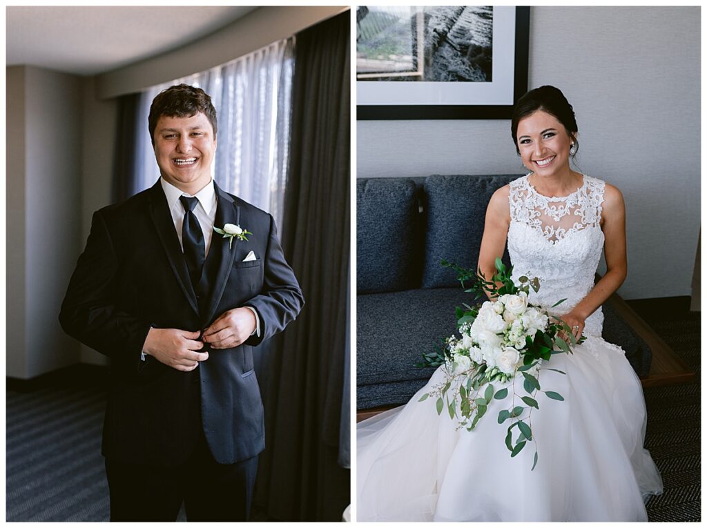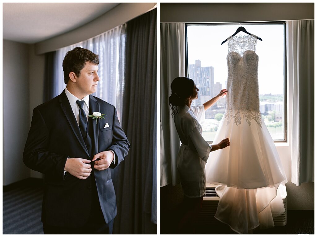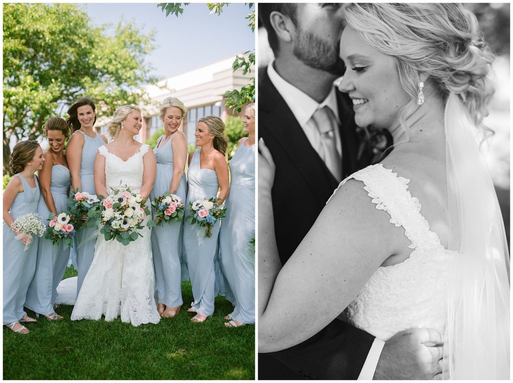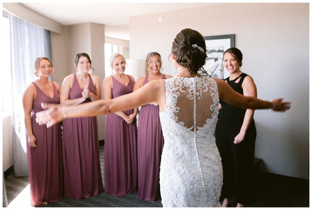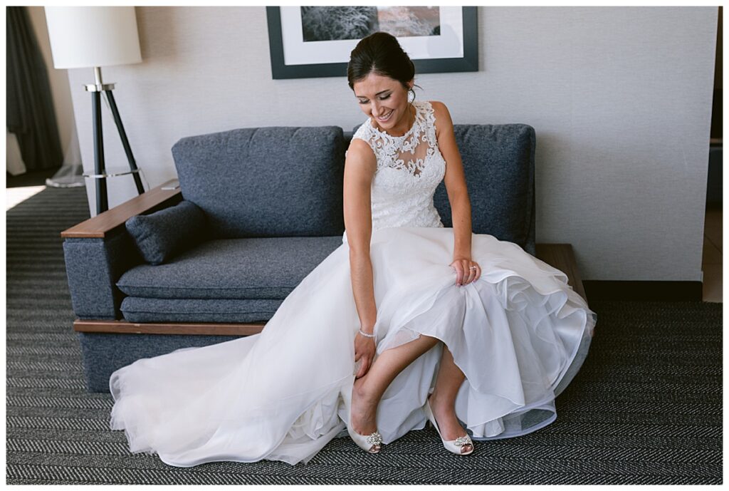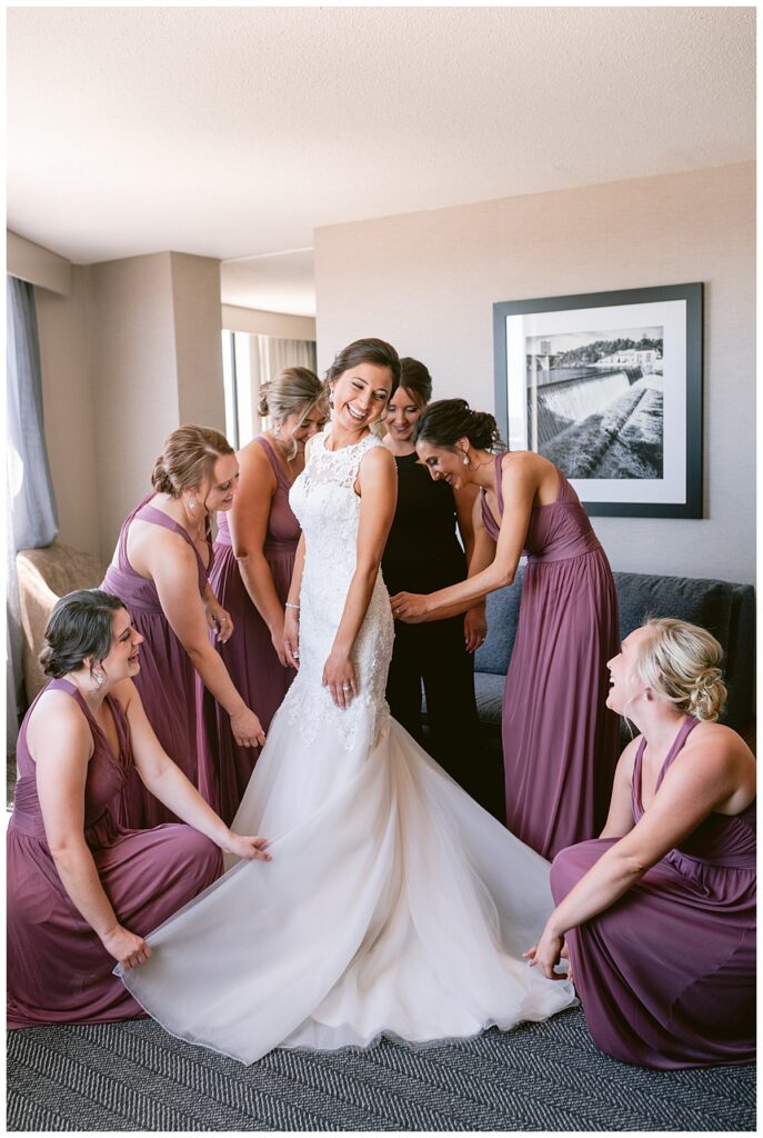 Their June wedding day was a beautiful one. Jessica and Nick got ready at the Courtyard by Mariott in downtown Minneapolis. With its stunning views of the city skyline, Jess and her bridesmaids started the day toasting with mimosas and getting hair and make up done by Pure Beauty and Make-up.
