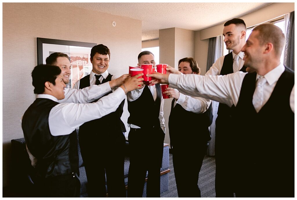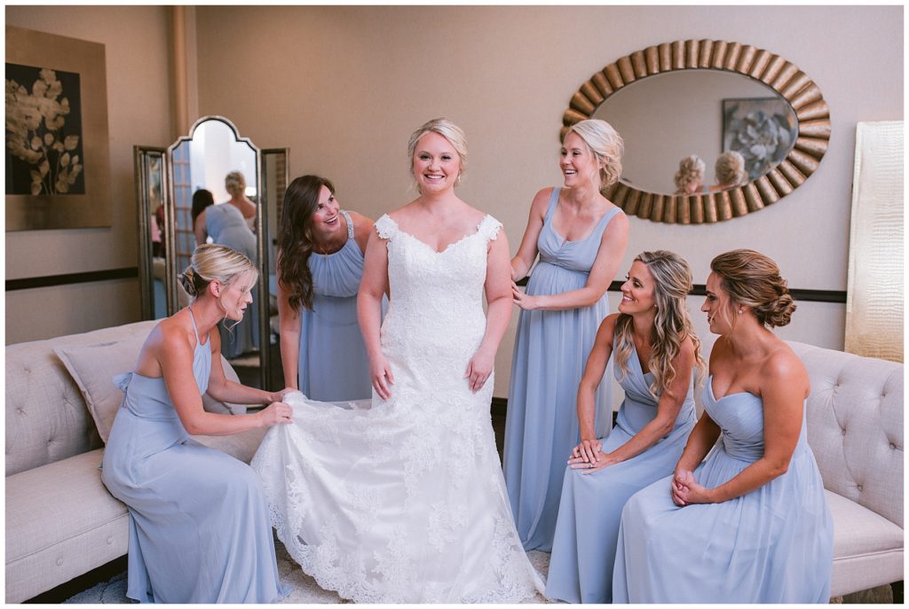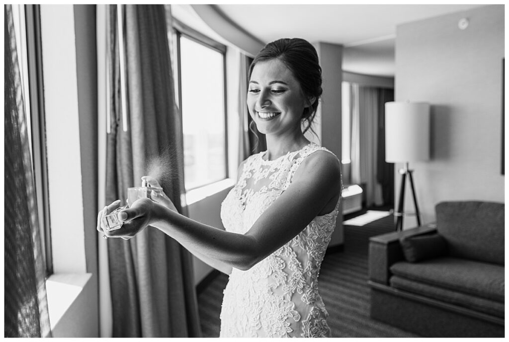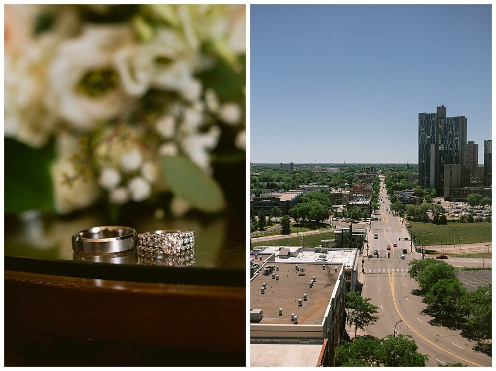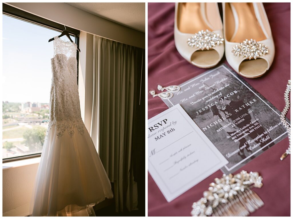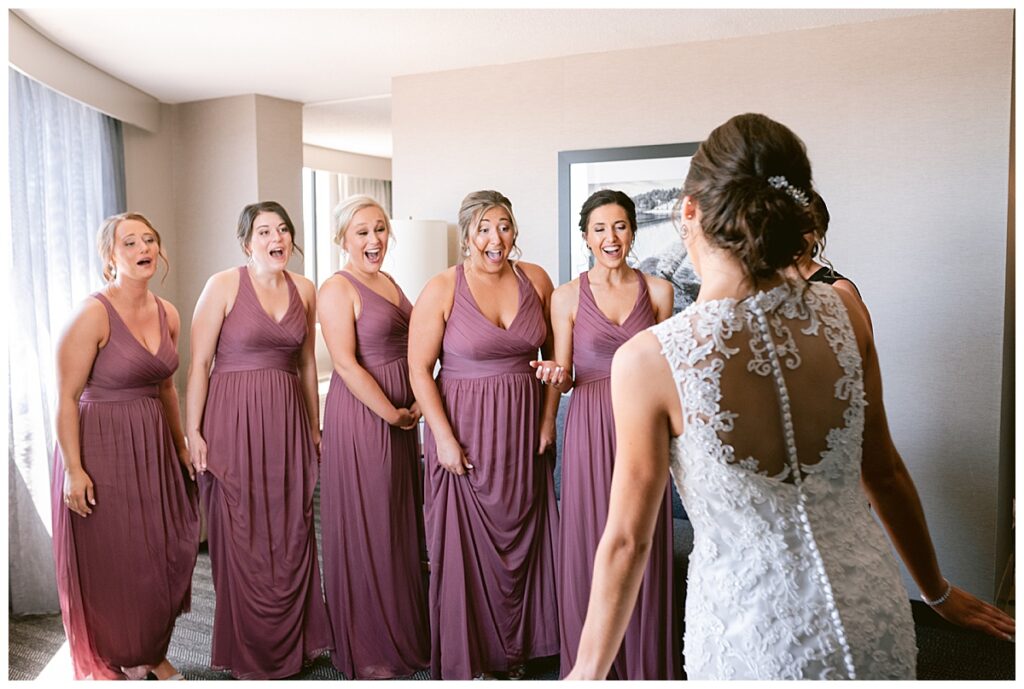 Their June wedding day was a beautiful one. Jessica and Nick got ready at the Courtyard by Mariott in downtown Minneapolis. With its stunning views of the city skyline, Jess and her bridesmaids started the day toasting with mimosas and getting hair and make up done by Pure Beauty and Make-up.