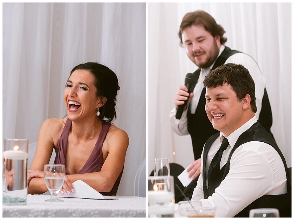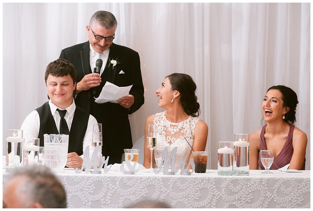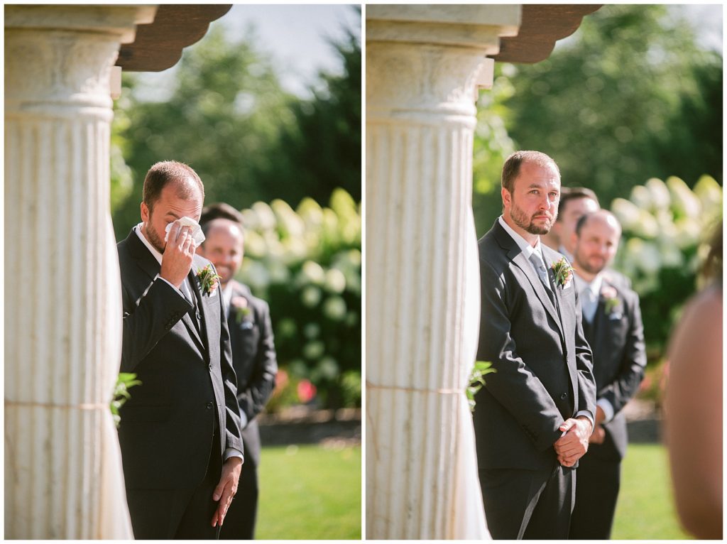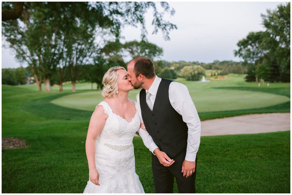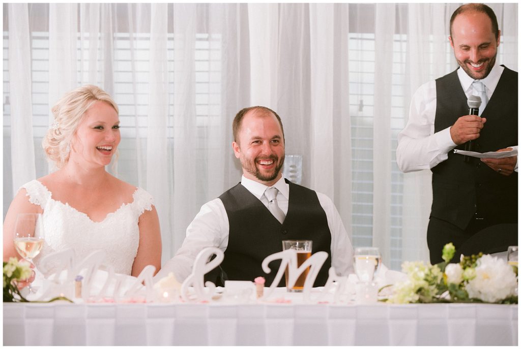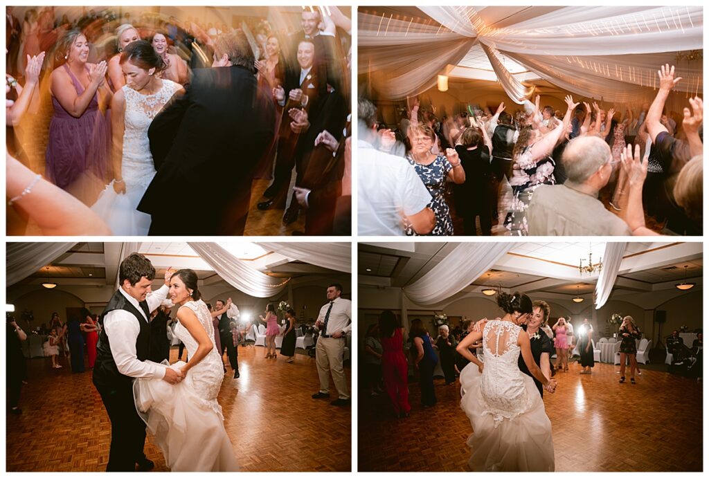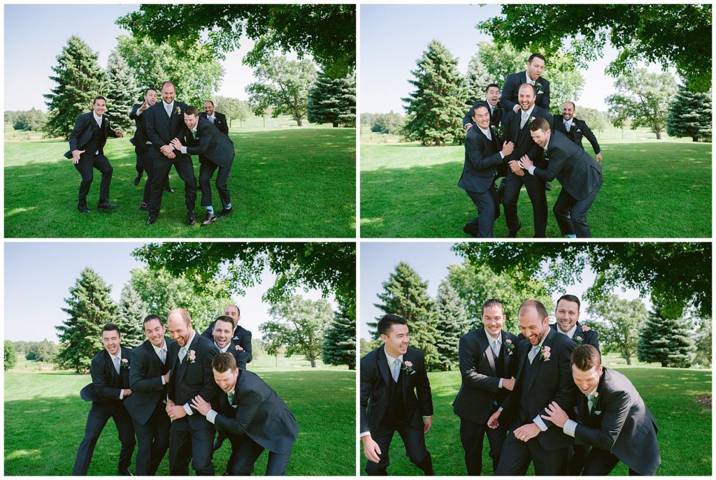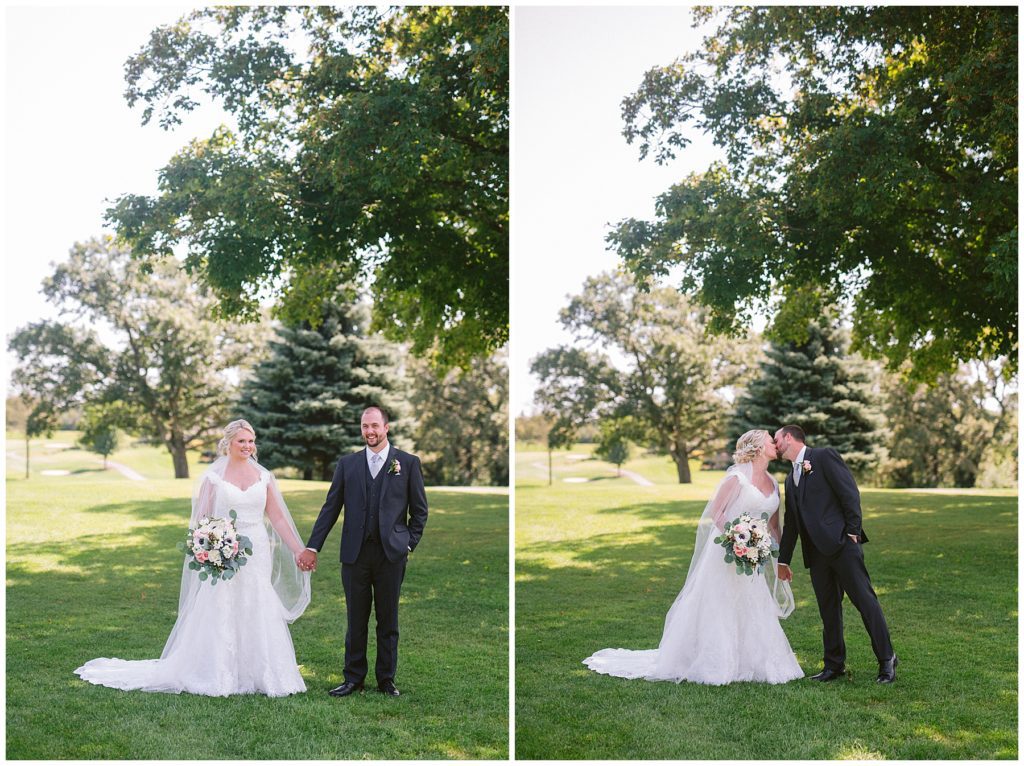 Because both Jessica and Nick love nature as well as Minneapolis, they decided to do their first look and many of the bridal party photos at Boom Island Park. Upon seeing Jess in her stunning gown from Our Shop Bridal, Nick held back tears as the couple saw each other for the first time. Jessica’s stunning bridal bouquet from Artemisia Studios was perfect when paired with the cathedral veil and lace back dress. The bridal party joined us, bridesmaids in lilac dresses from David’s Bridal and groomsmen in black tuxes from Savvi, and we had a fun time walking the park and the warmth of the summer day.