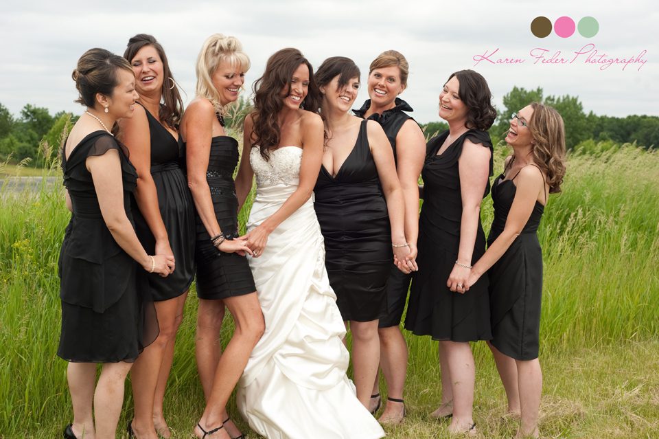 Bridesmaids picked out a trendy black dress that suited their personalities.