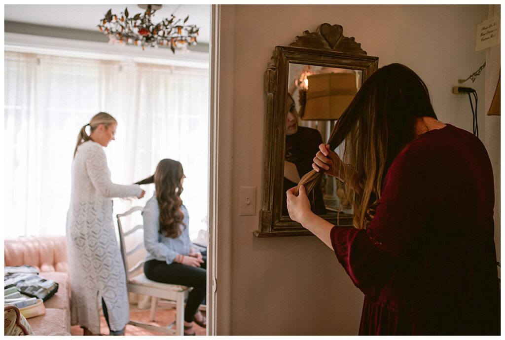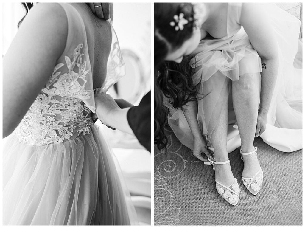 The morning began in the most beautiful bridal suite, where Alissa and her bridesmaids spent the early hours getting ready. The space was filled with laughter, music, and anticipation. Her mom helped her into her gorgeous gown from Vow’d Weddings, while her bridesmaids looked on with joy and happy tears. Hair and makeup by @smokeshowstudiomn completed her timeless look — effortlessly elegant and radiant.