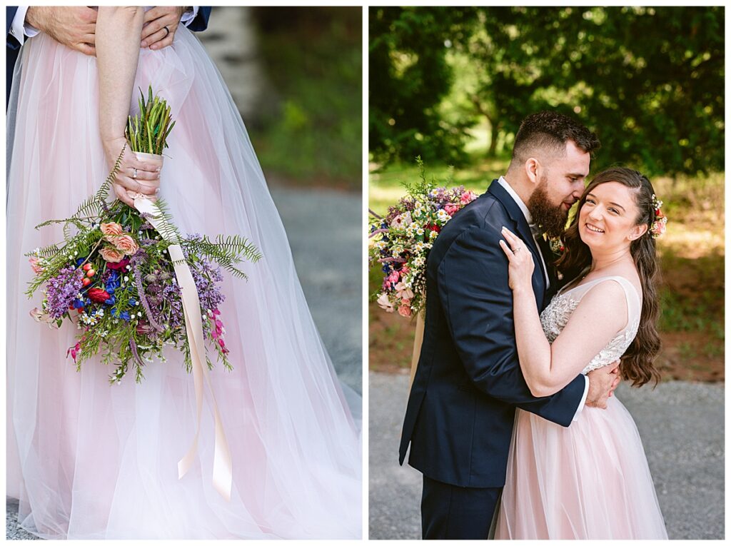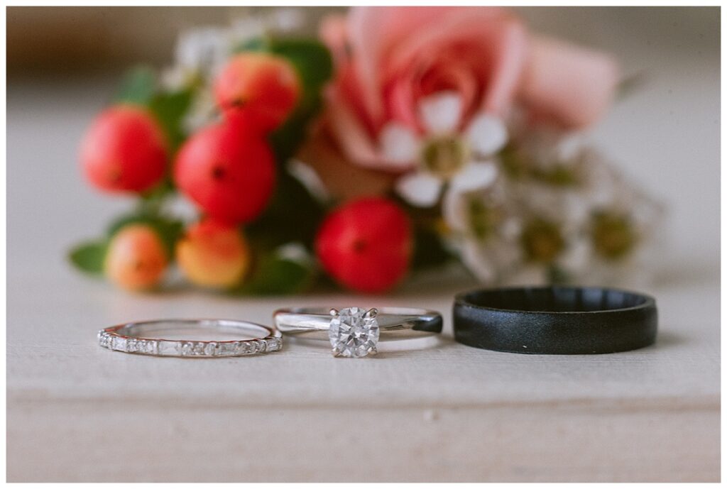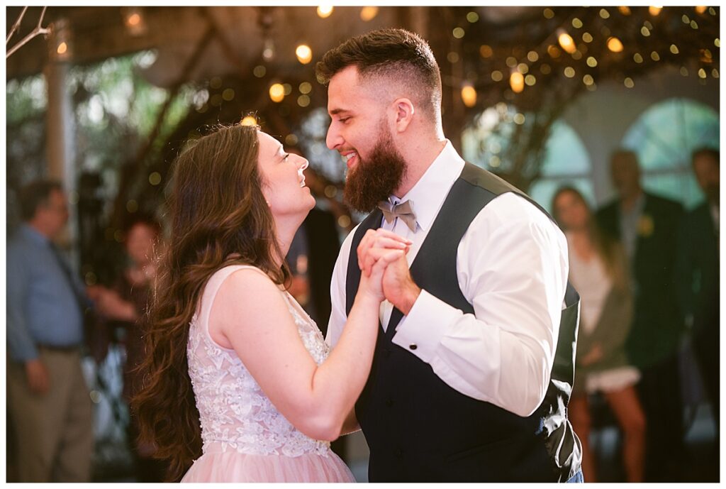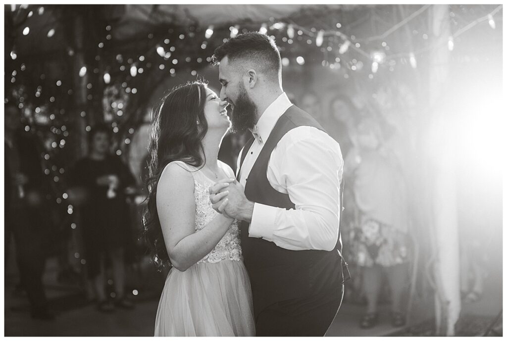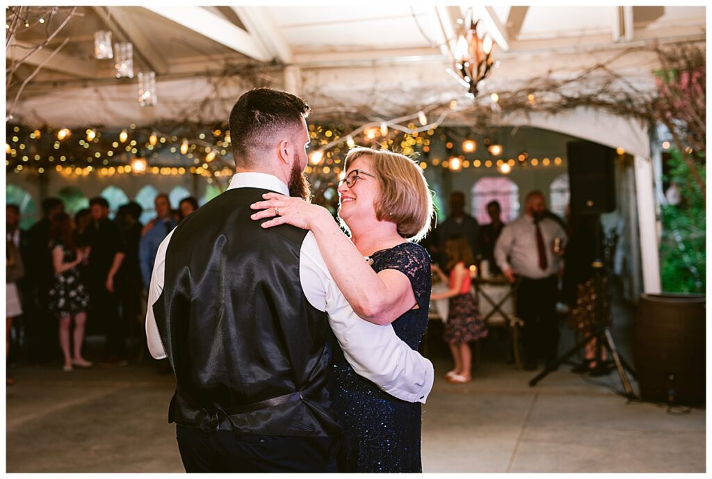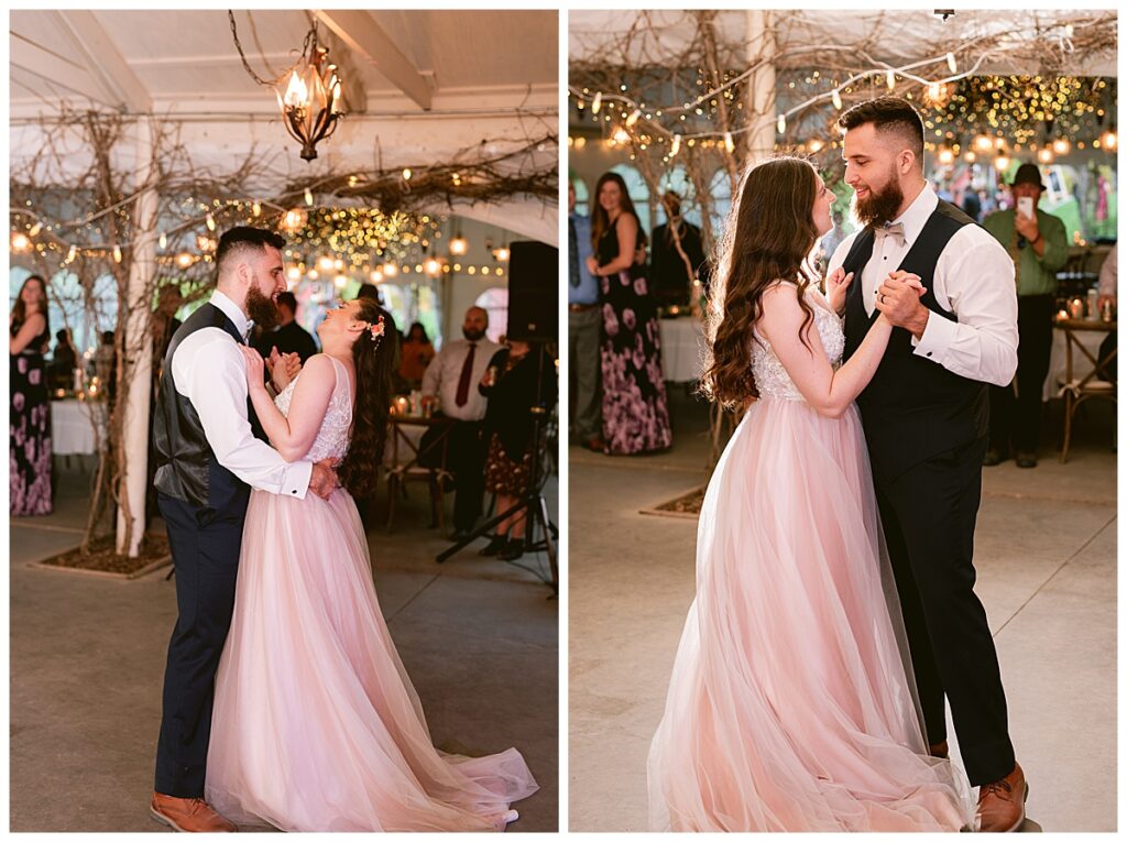 After the “I do’s,” guests enjoyed an unforgettable reception planned and coordinated by Tara of Blue Stone Events. The patio and winery spaces came alive with conversation, dancing, and golden light. Dinner by Fork and Flair was delicious, followed by a stunning cake from Three Schweet Sisters that was almost too pretty to cut. The florals by Florology added the perfect romantic touch, complementing the vineyard’s natural charm.