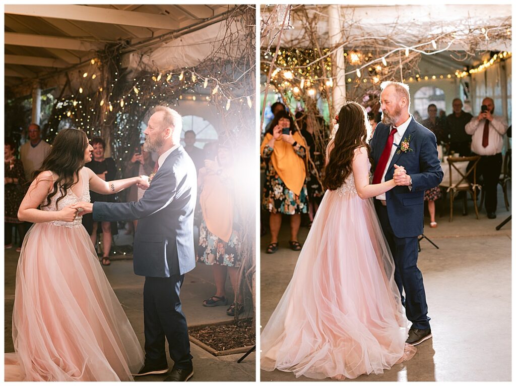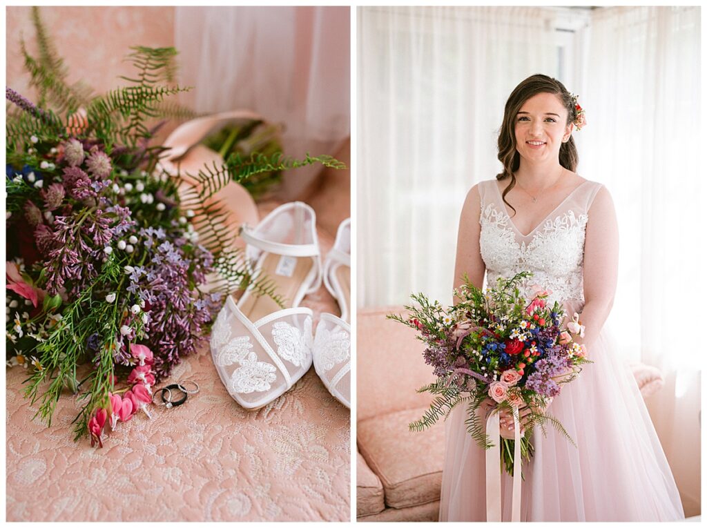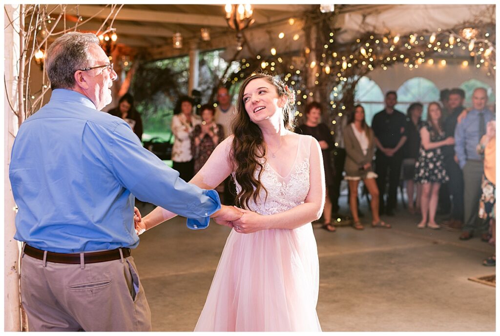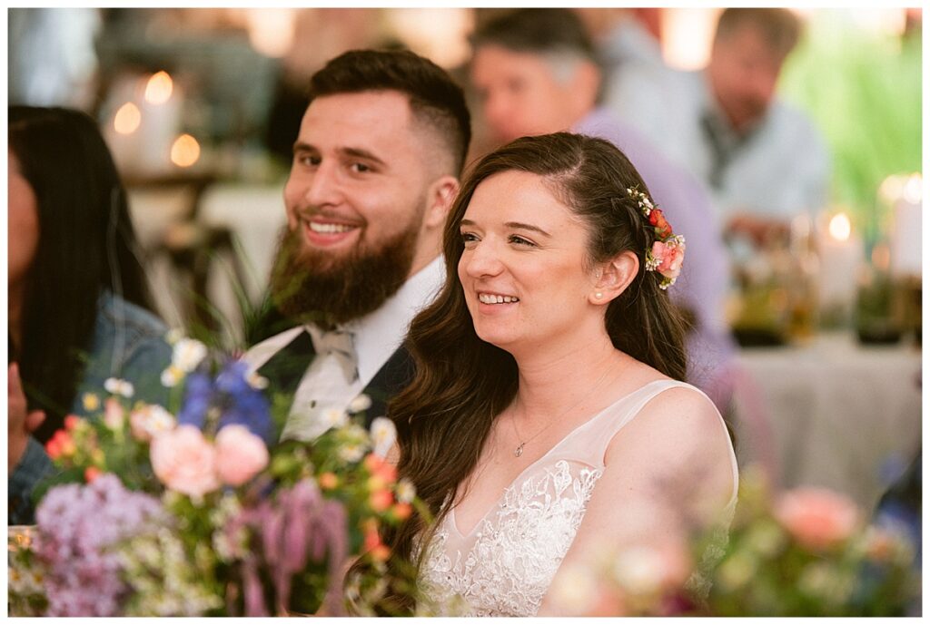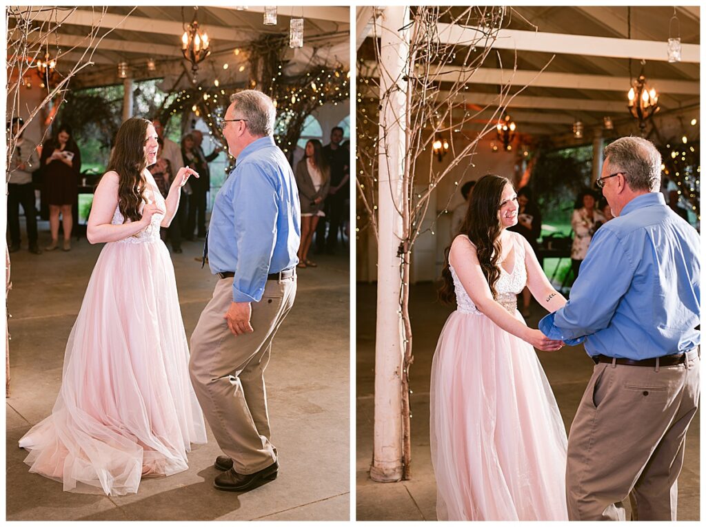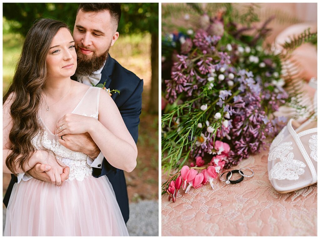 After the “I do’s,” guests enjoyed an unforgettable reception planned and coordinated by Tara of Blue Stone Events. The patio and winery spaces came alive with conversation, dancing, and golden light. Dinner by Fork and Flair was delicious, followed by a stunning cake from Three Schweet Sisters that was almost too pretty to cut. The florals by Florology added the perfect romantic touch, complementing the vineyard’s natural charm.