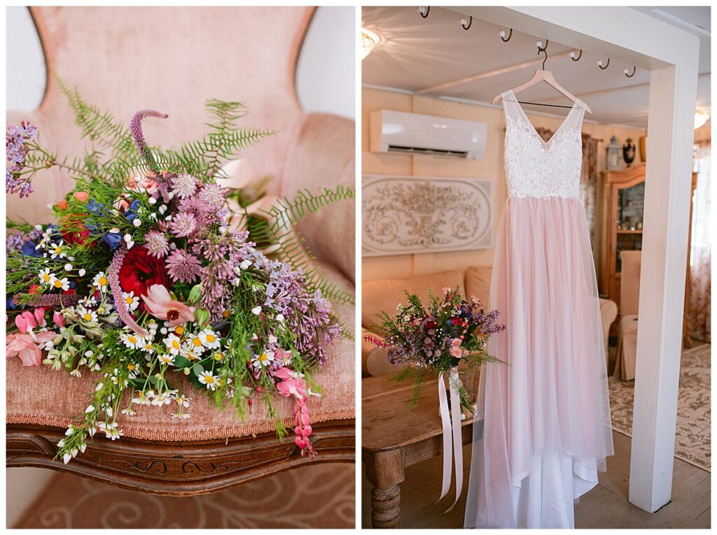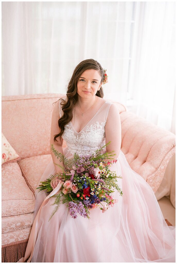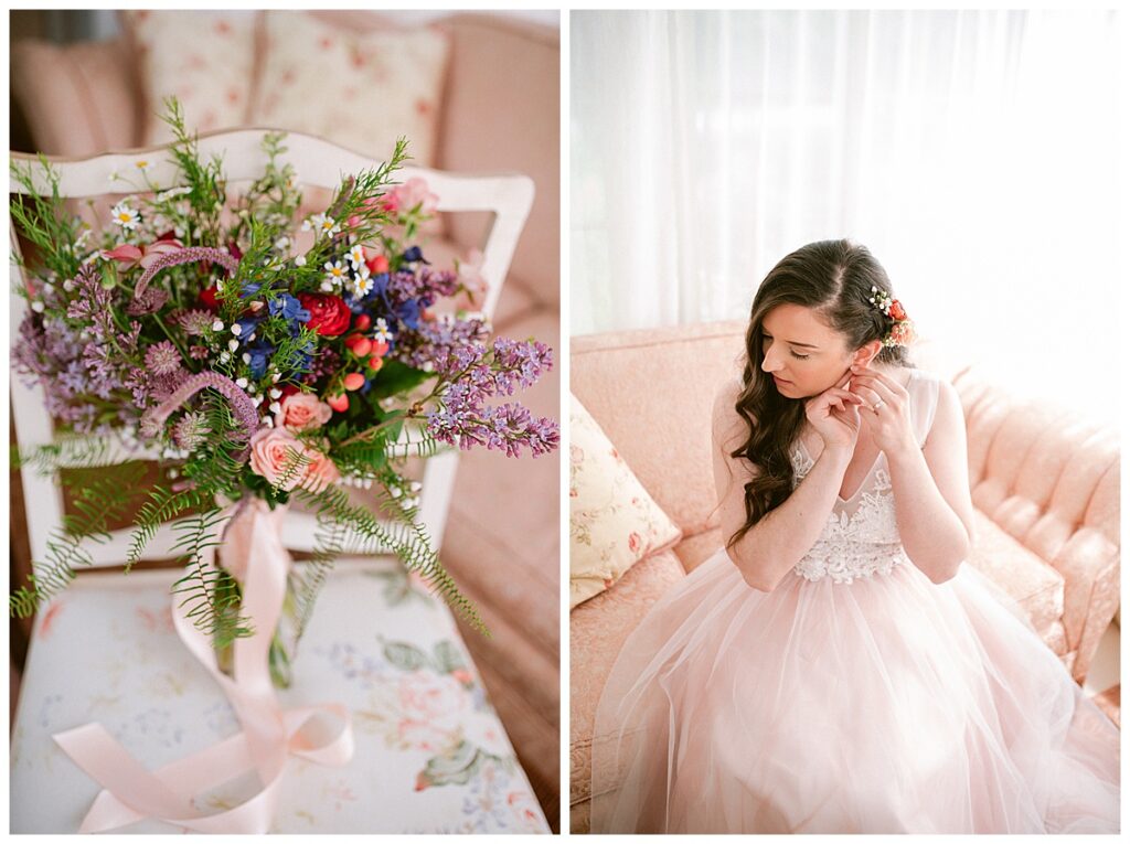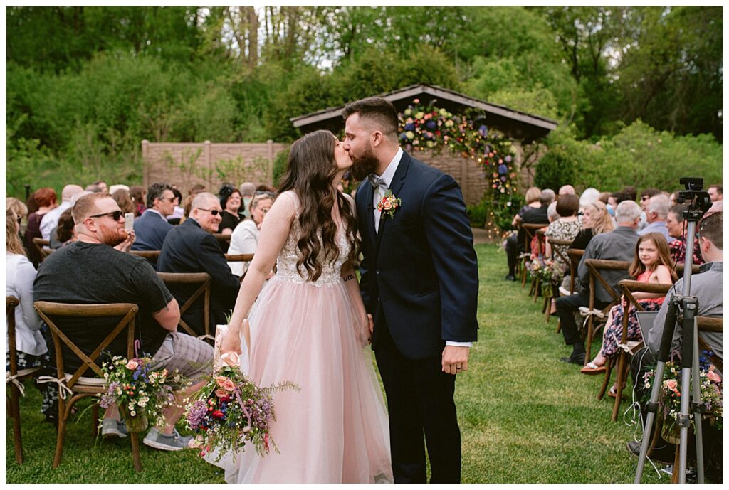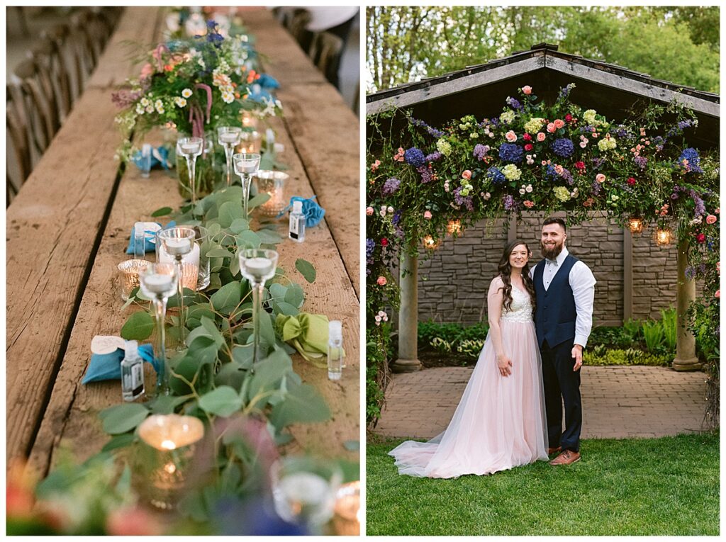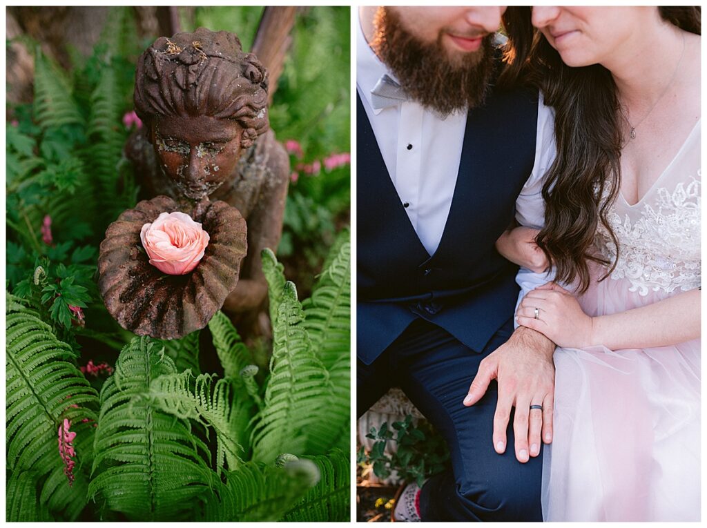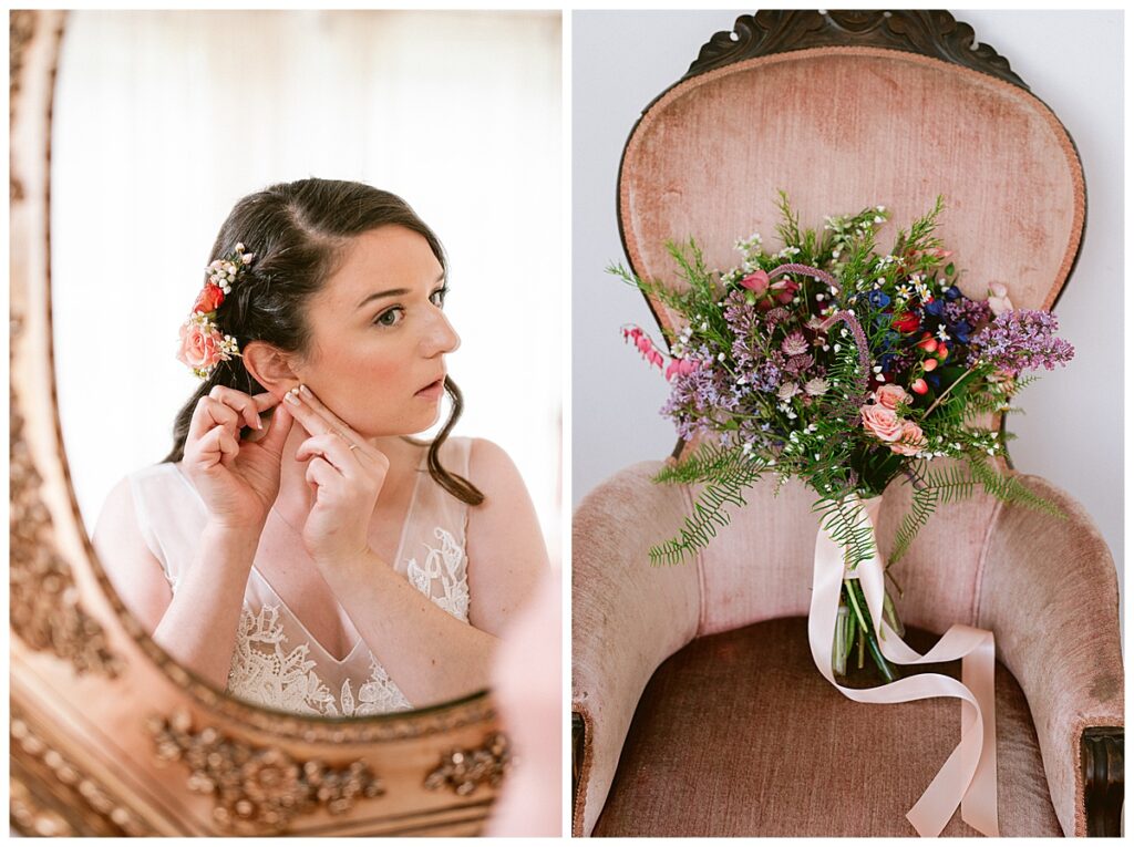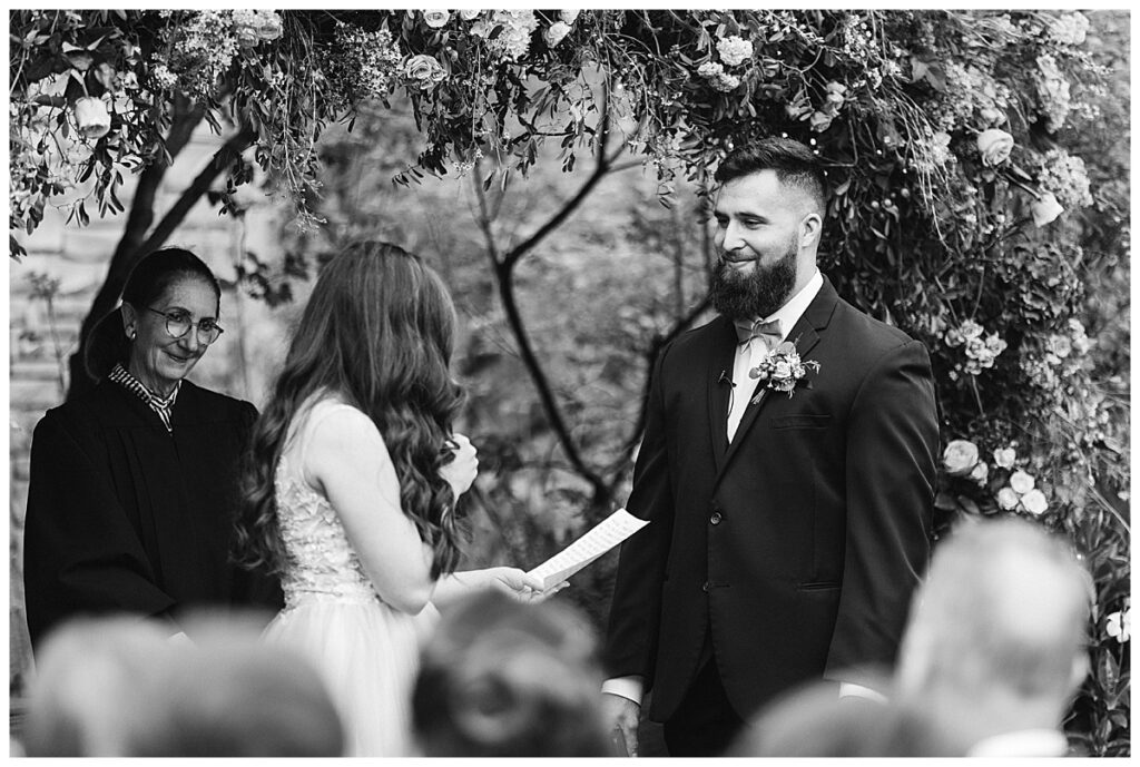 Before the ceremony, Alissa and Clayton shared an emotional first look inside and then headed outdoors to read private vows to one another, a heartfelt and intimate moment that truly captured their love. Afterward, we explored the property for their portraits from the charming vineyard paths to the airy patio and indoors with all the eclectic backdrops. Every corner of Belle Ame provided a gorgeous backdrop, and the two of them simply glowed.