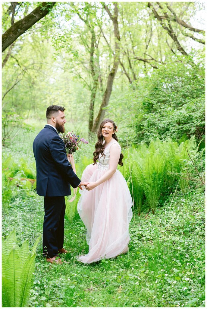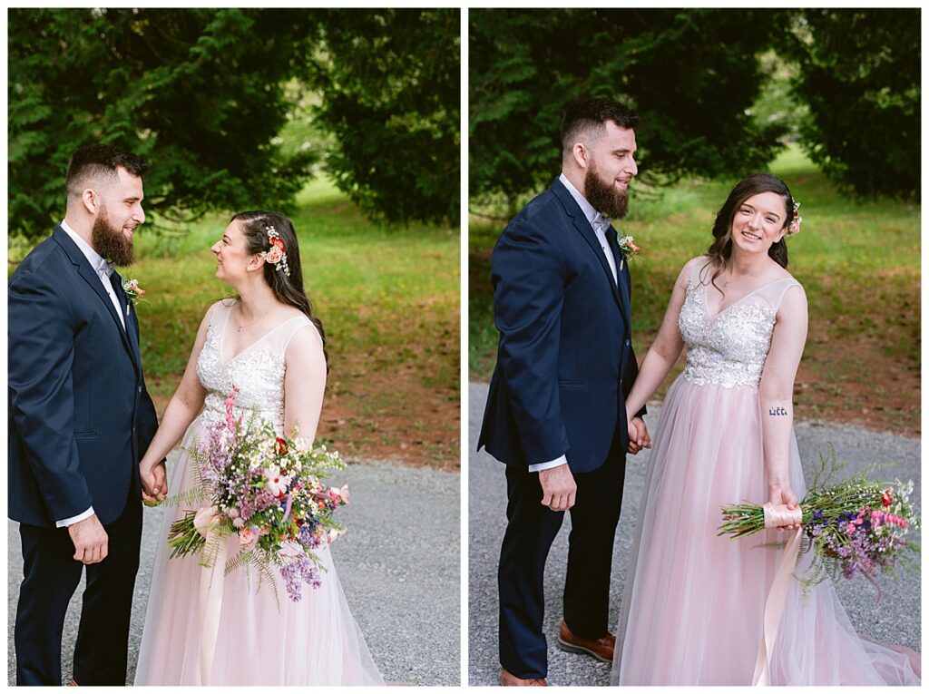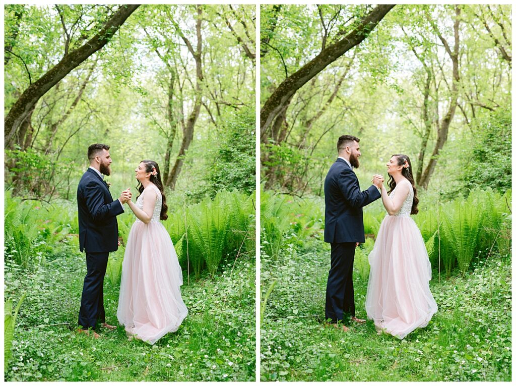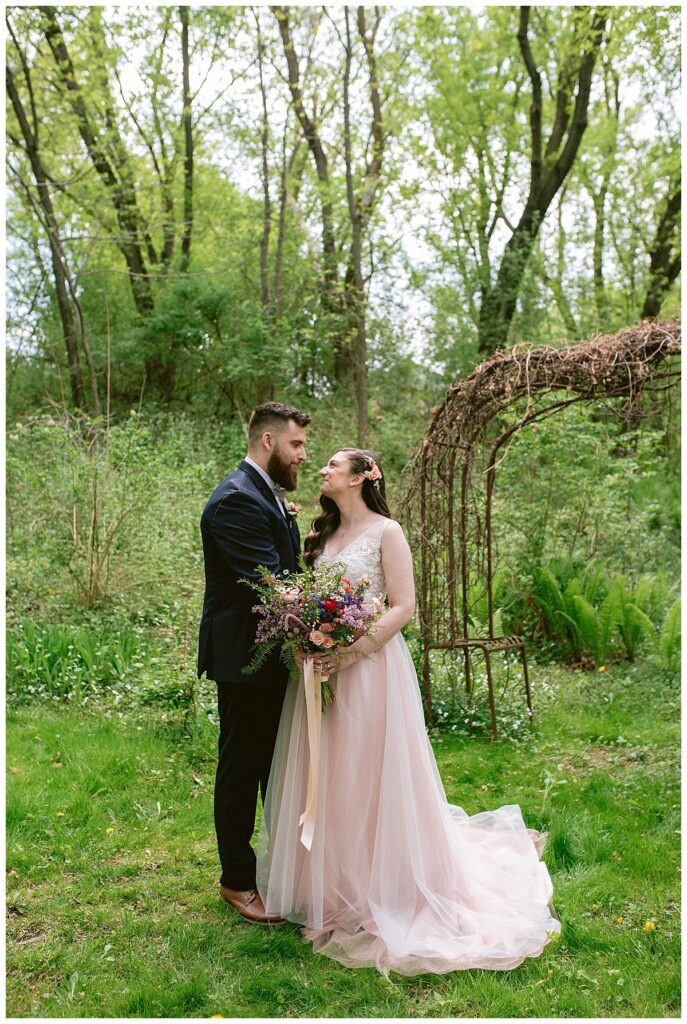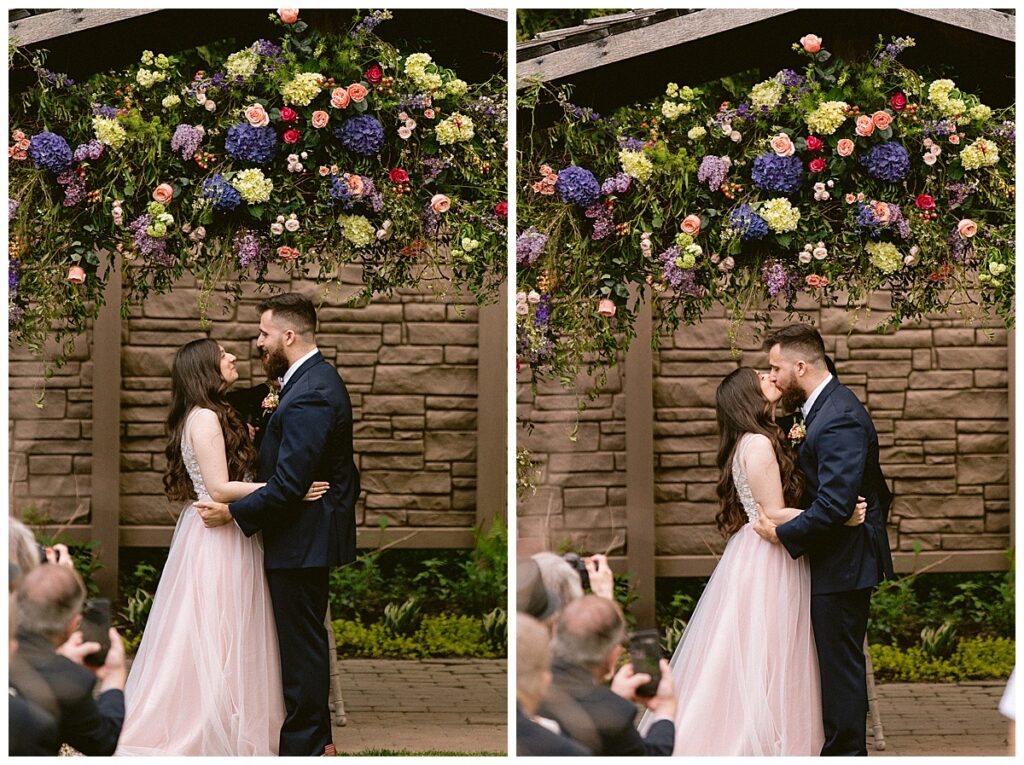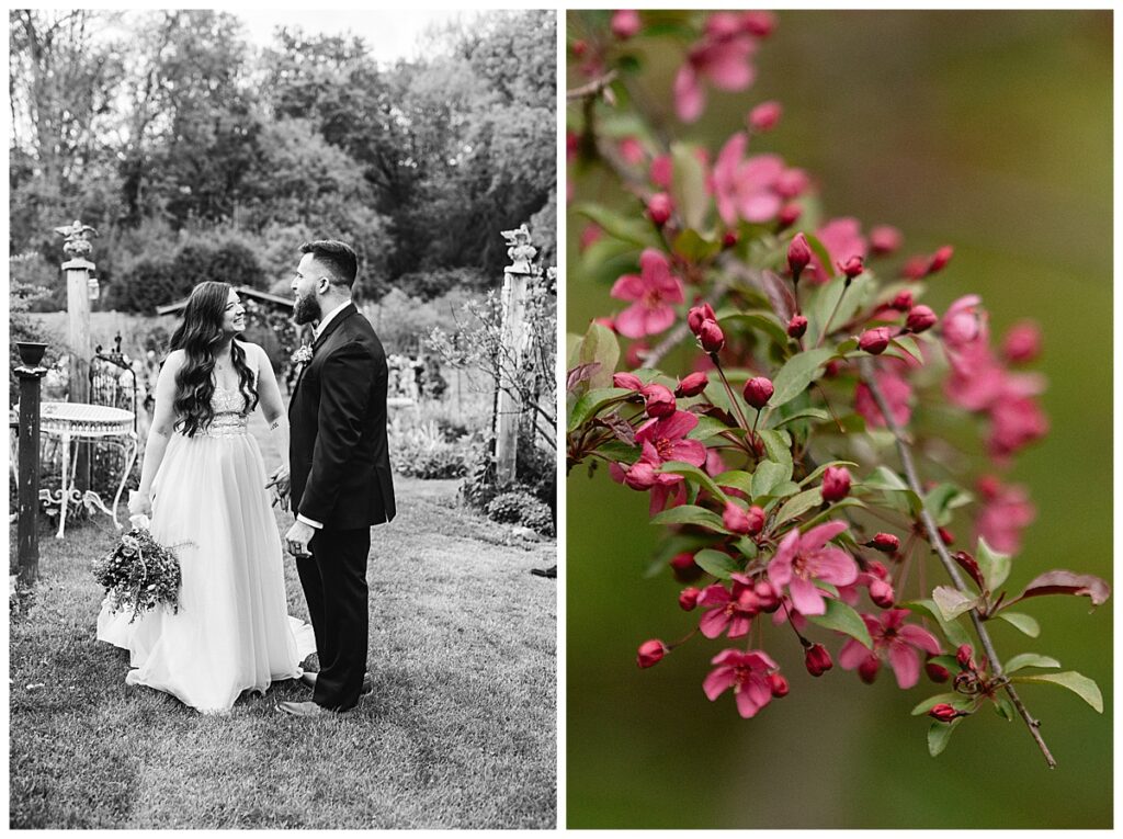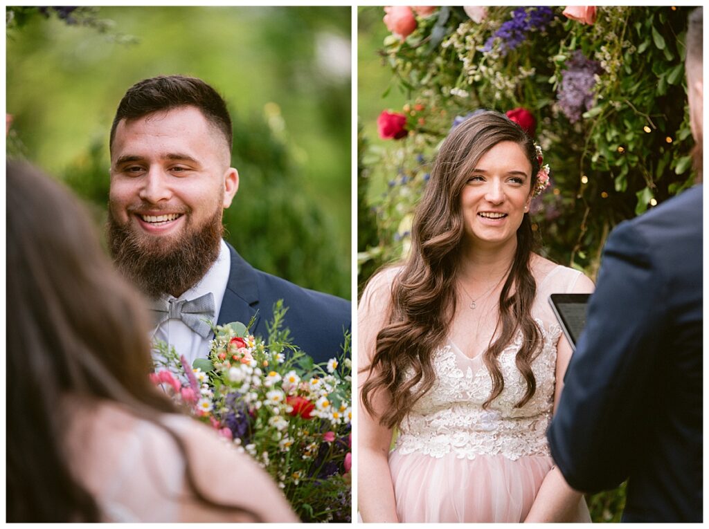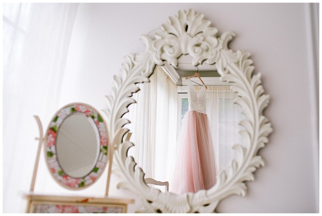 Before the ceremony, Alissa and Clayton shared an emotional first look inside and then headed outdoors to read private vows to one another, a heartfelt and intimate moment that truly captured their love. Afterward, we explored the property for their portraits from the charming vineyard paths to the airy patio and indoors with all the eclectic backdrops. Every corner of Belle Ame provided a gorgeous backdrop, and the two of them simply glowed.