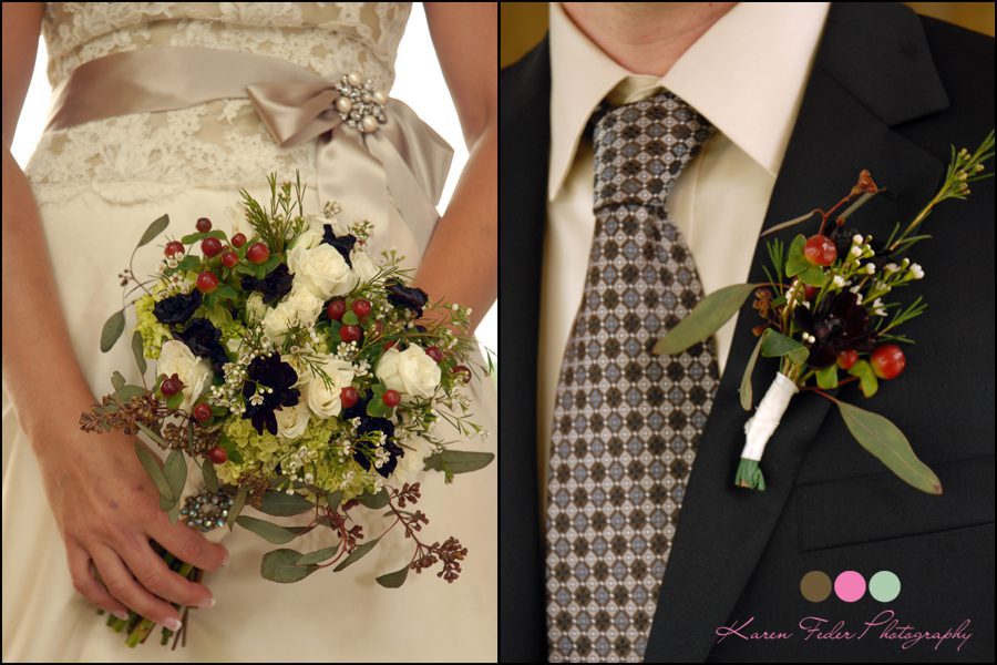 I loved the centerpieces that Anna and her mother had made from dried Hydrangeas and fall foliage. All were held in antique tin pitchers and buckets.