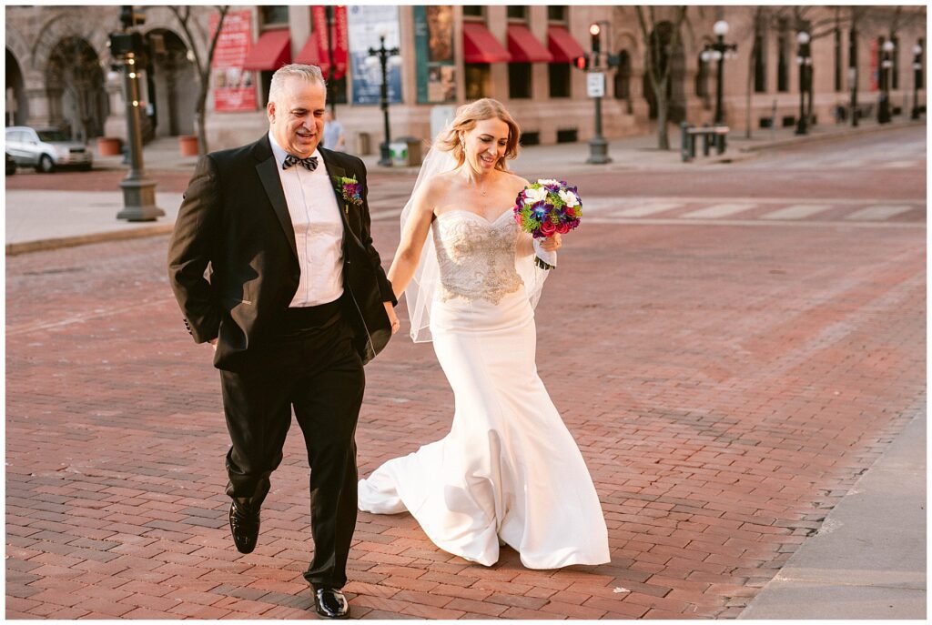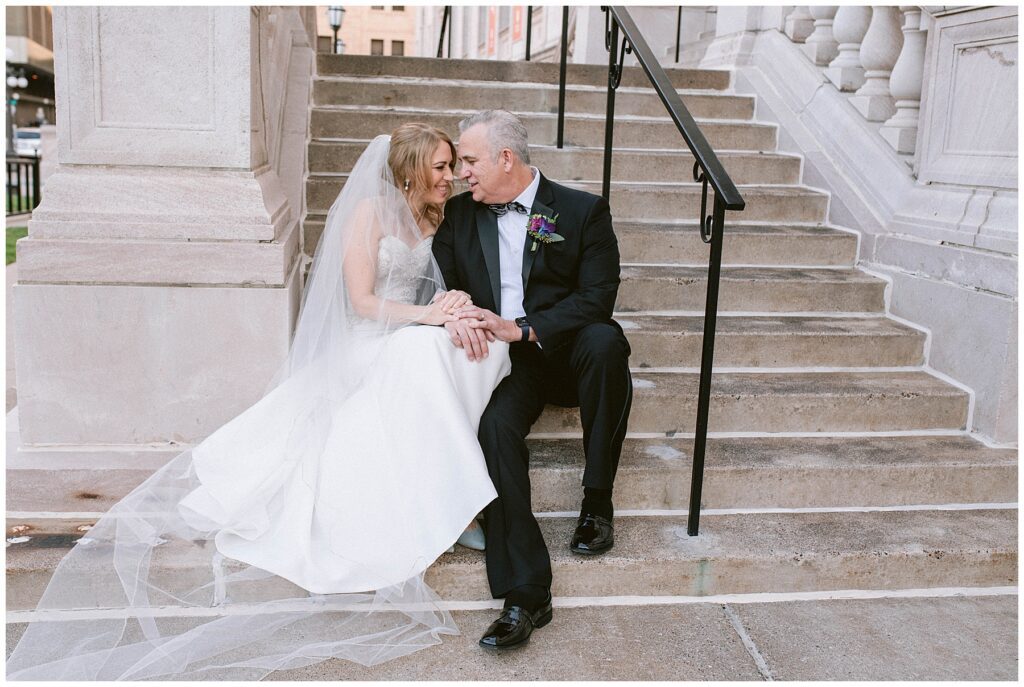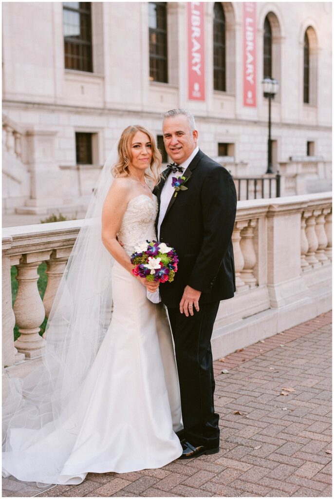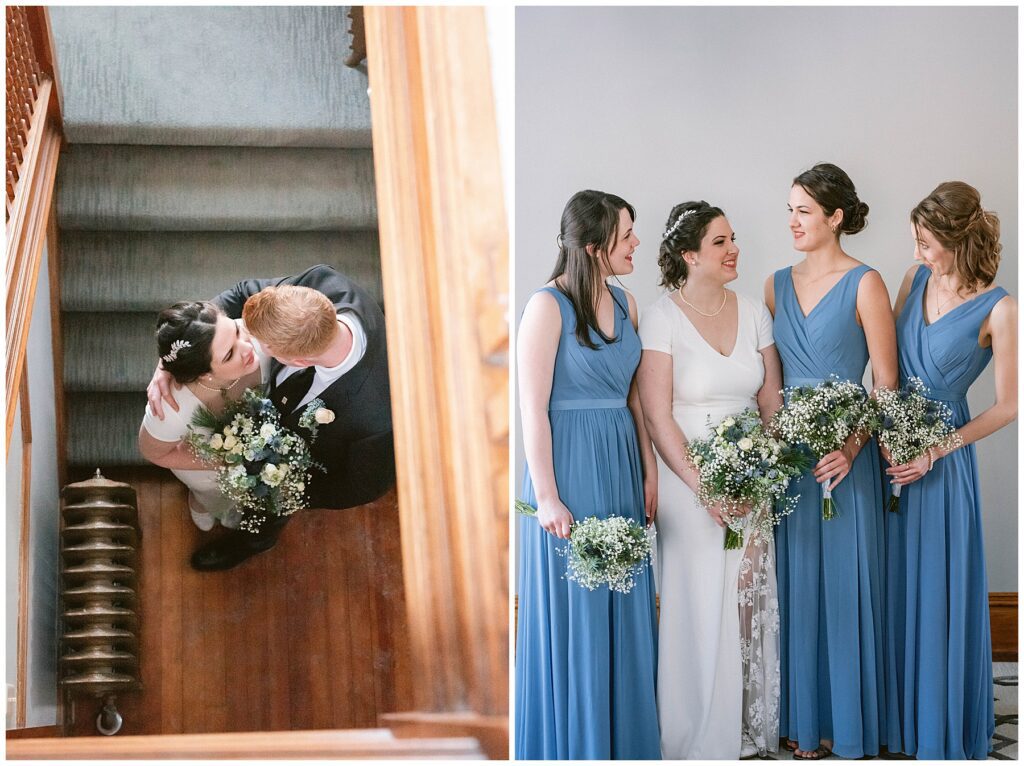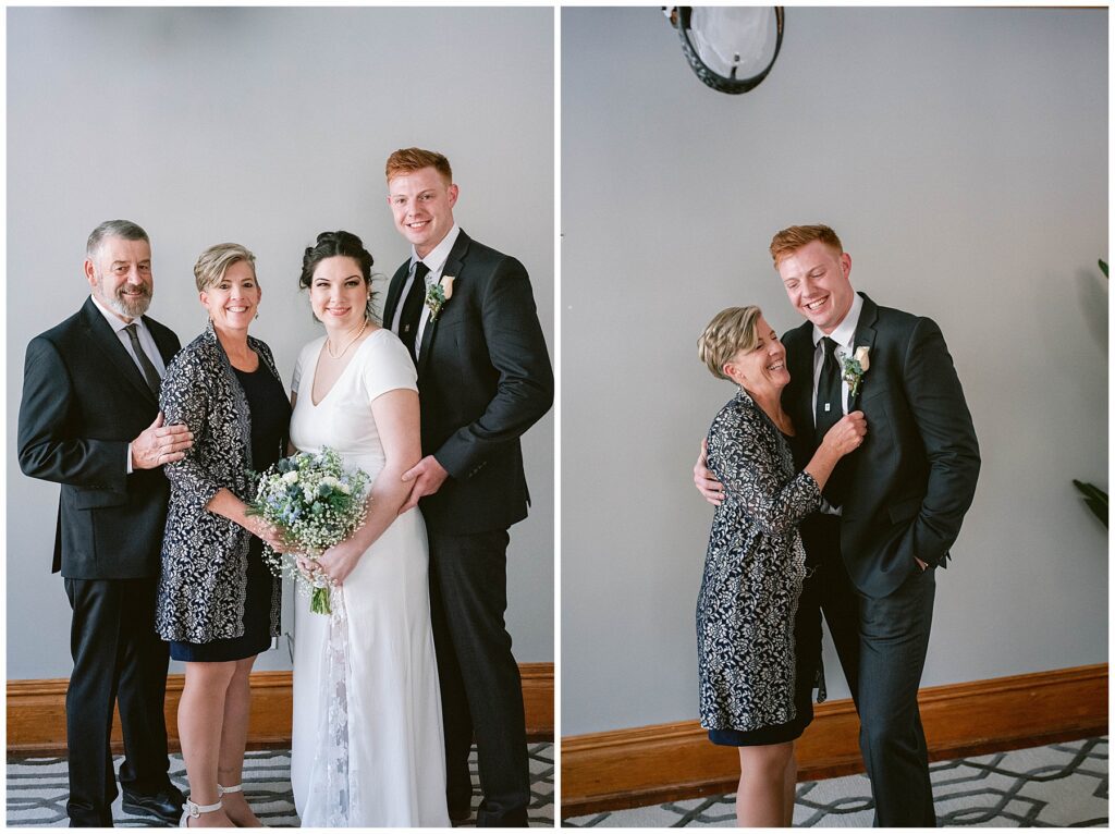 Back inside the Landmark Center, the couple and their wedding party explored the historic beauty of the building making sure to take photos in staircases and old courtrooms. From there, the family met the couple for family photos in the beautiful white entry way of the building.