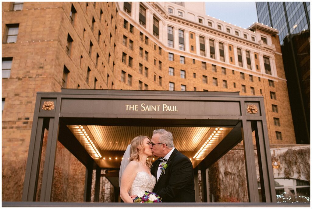 In the heart of downtown St. Paul, amidst the timeless grandeur of the Landmark Center, Sophia and Christian’s love story unfolded on a crisp and sunny February day. Planned meticulously by Cat of Lupine & Co. Events, their wedding was a harmonious blend of classic elegance, romance, and heartfelt moments.