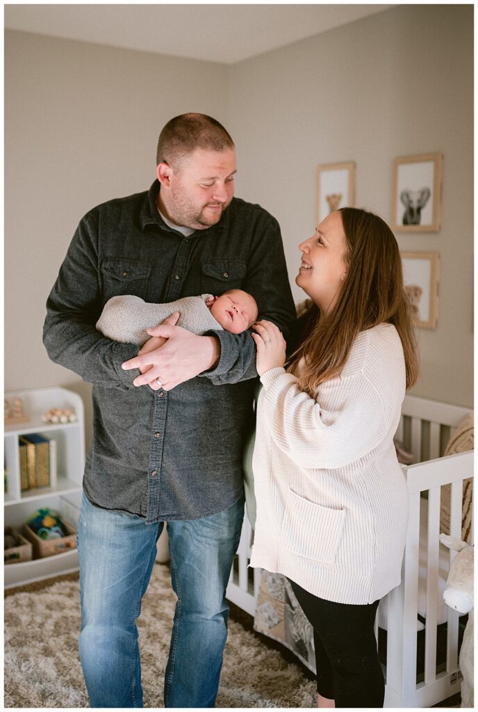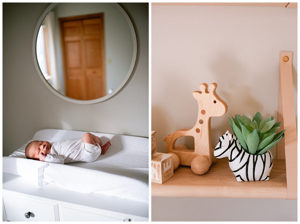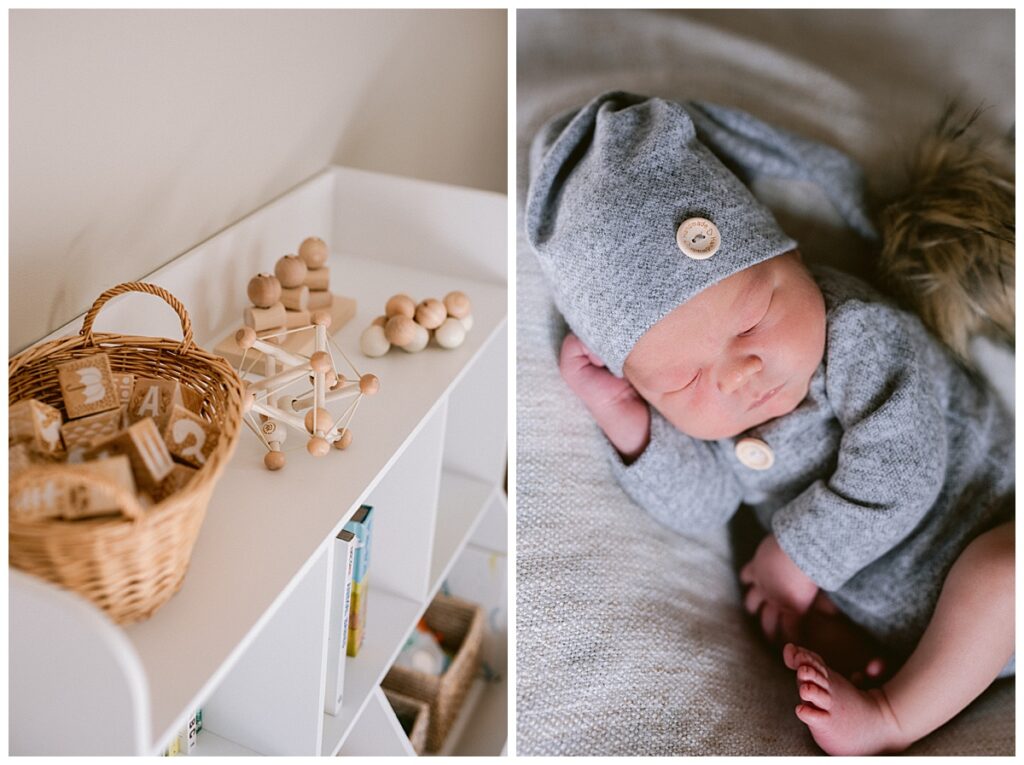 When Molly emailed to say they were expecting and looking for newborn photos, I was so excited to be able to see this incredible couple again. Sweet Declan arrived and was such an easy baby to photograph. My heart was bursting as he slept through almost the entire session. Molly chose to do most of his photos in his nursery which was decorated with neutral wooden materials. She also chose some of the cutest outfits for him which were also neutral to fit his decor.